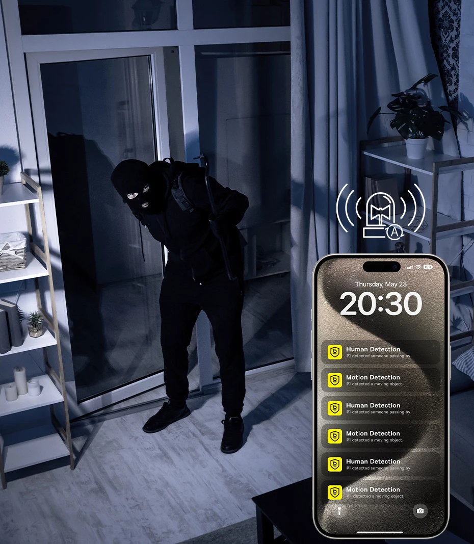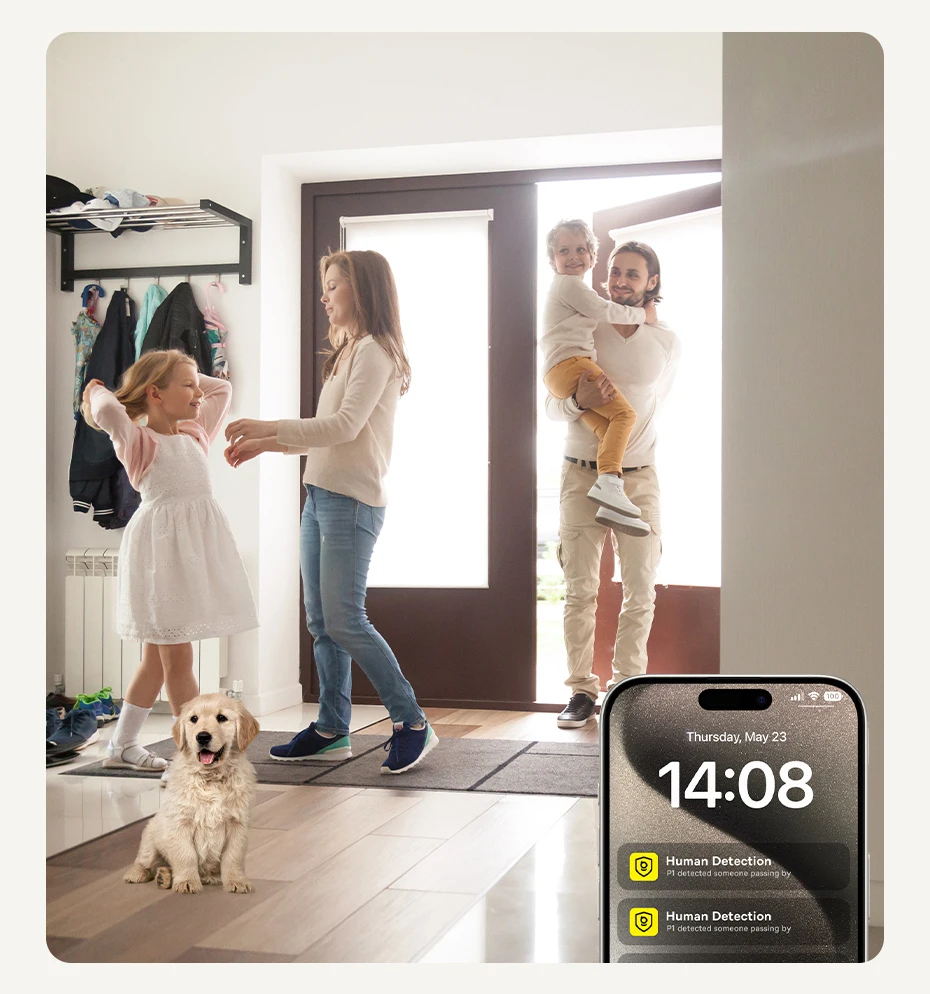 Manténgase informado con la detección humana por IA. Las alertas instantáneas lo mantienen en el ciclo de actividad en el hogar, siempre que esté.