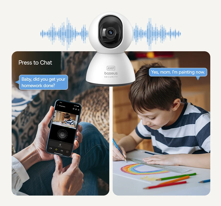Manténgase conectado con el audio bidireccional de nuestra cámara. Guíe e interactúe con su amada familia de forma remota, sin importar dónde se encuentre, fomentando la conexión y la seguridad.