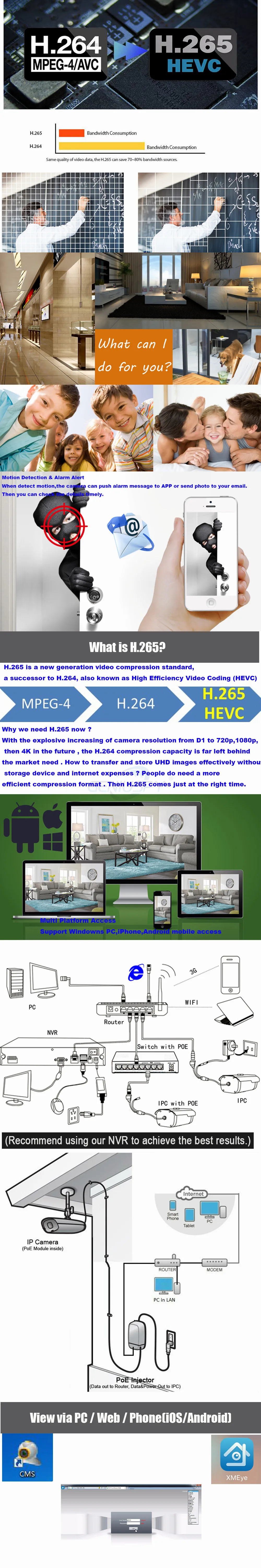 Compresión de video avanzada H.265 (compatible con H.264), velocidad súper baja, calidad de imagen de alta definición;