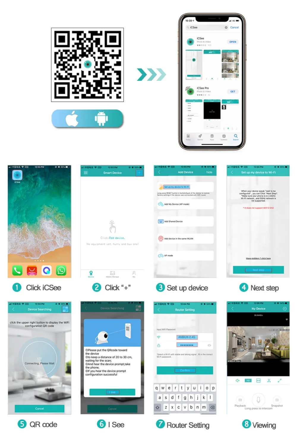 ① Descargue la aplicación icsee de Google Mall u otros centros comerciales de software