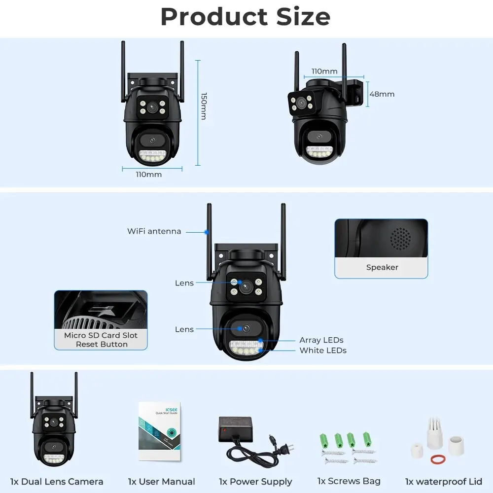 Comprar Cámara IP PTZ de 8MP, videocámara con WiFi, doble pantalla, seguimiento automático, visión nocturna en Color, CCTV al aire libre, protección de seguridad 4K, aplicación ICSee
