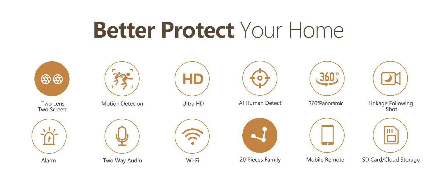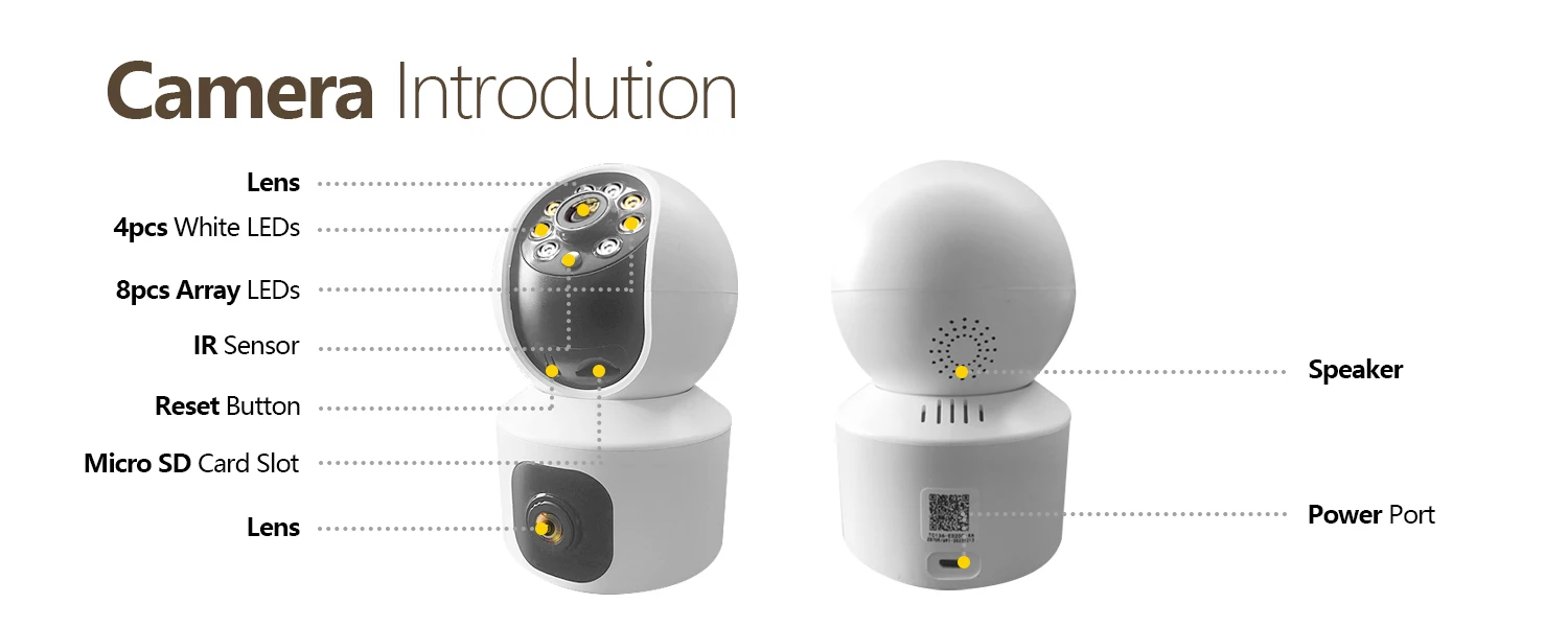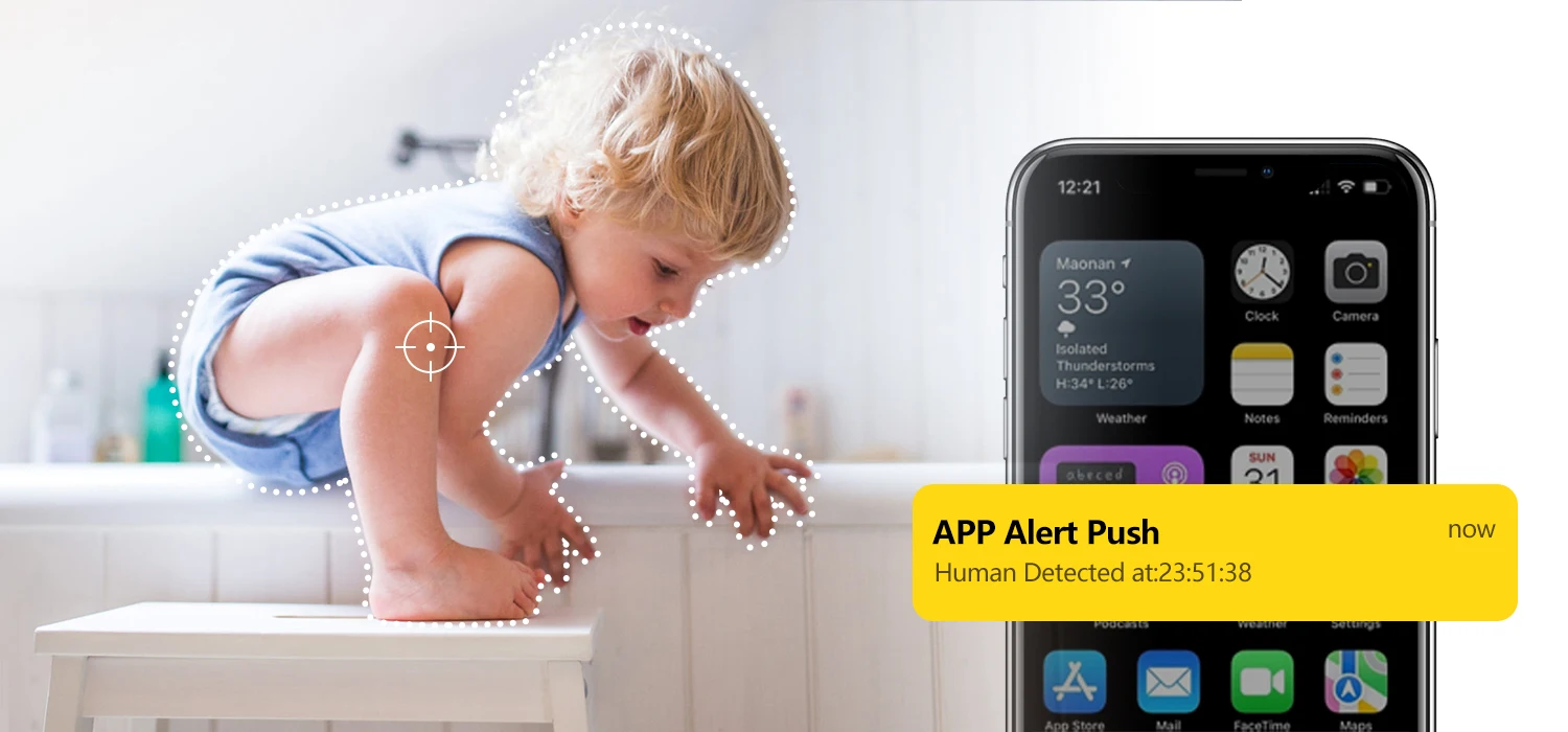 ▪Admite detección humanoide IA y alerta de alarma. Vista remota a través de la aplicación en el teléfono inteligente