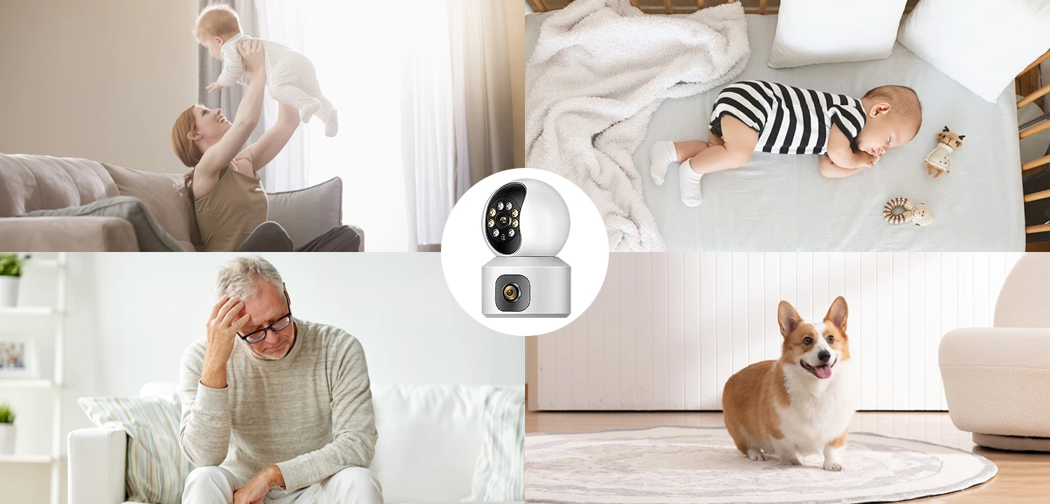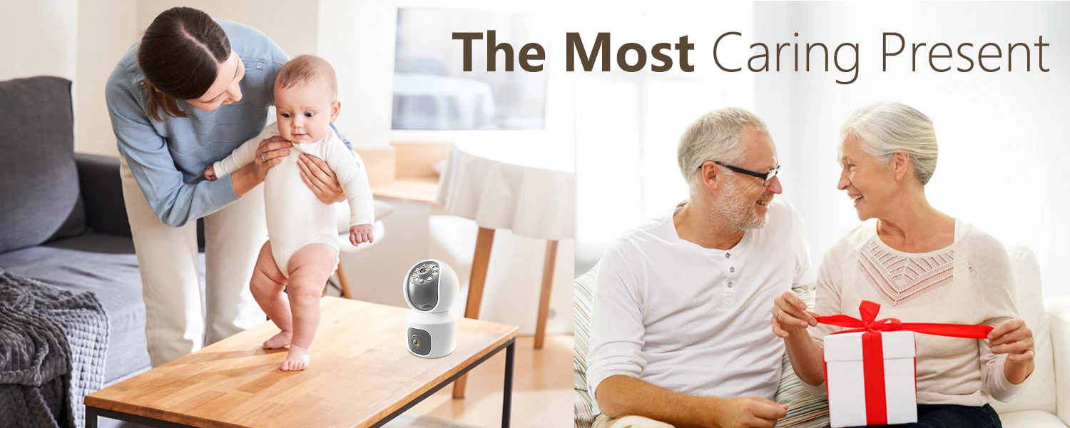 Comprar Cámara IP PTZ con pantalla de doble lente de 4MP y 2K, WIFI, inalámbrica, cámara de vigilancia de seguridad para el hogar inteligente, Audio bidireccional, Monitor de vídeo para mascotas y bebés