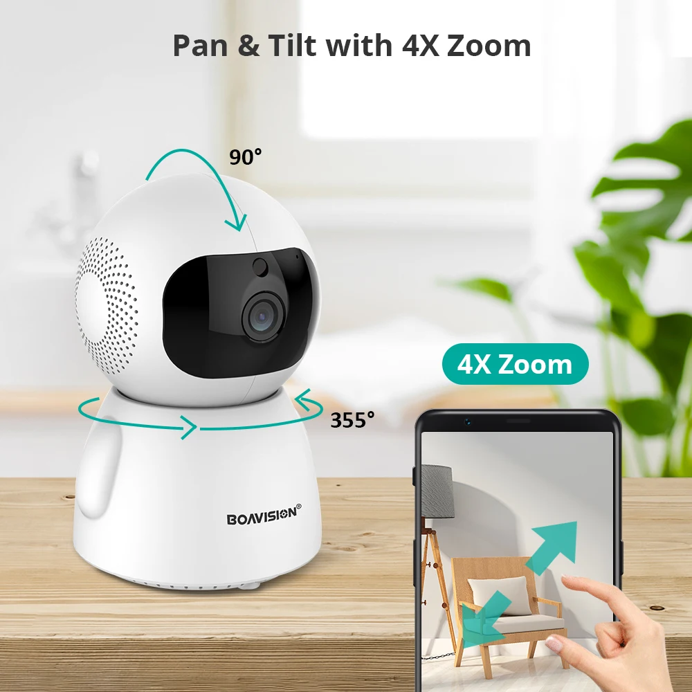 Inclinación panorámica de 355 °, rotación del control remoto de 90 °, acercar o alejar para comprobar más detalles.