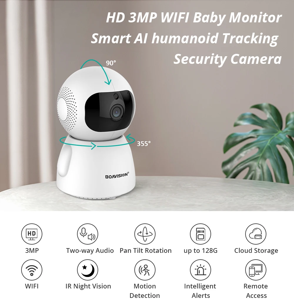 HD 3MP WIFI Baby Camera Smart AI cámara de seguridad de seguimiento humanoide