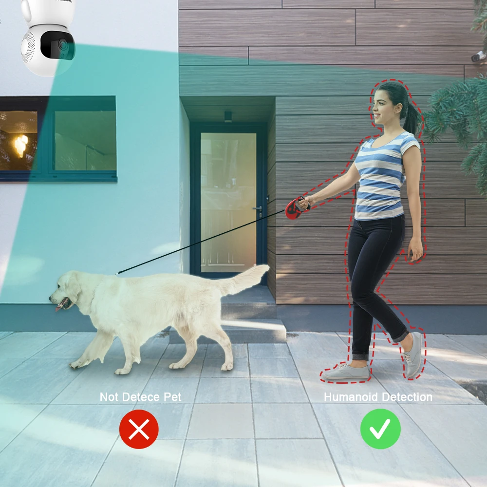 El soporte de detección humanoide activa la alarma de movimiento solo cuando se detecta una persona, y las mascotas como gatos y perros no activarán la alarma, lo que puede reducir las falsas alarmas.