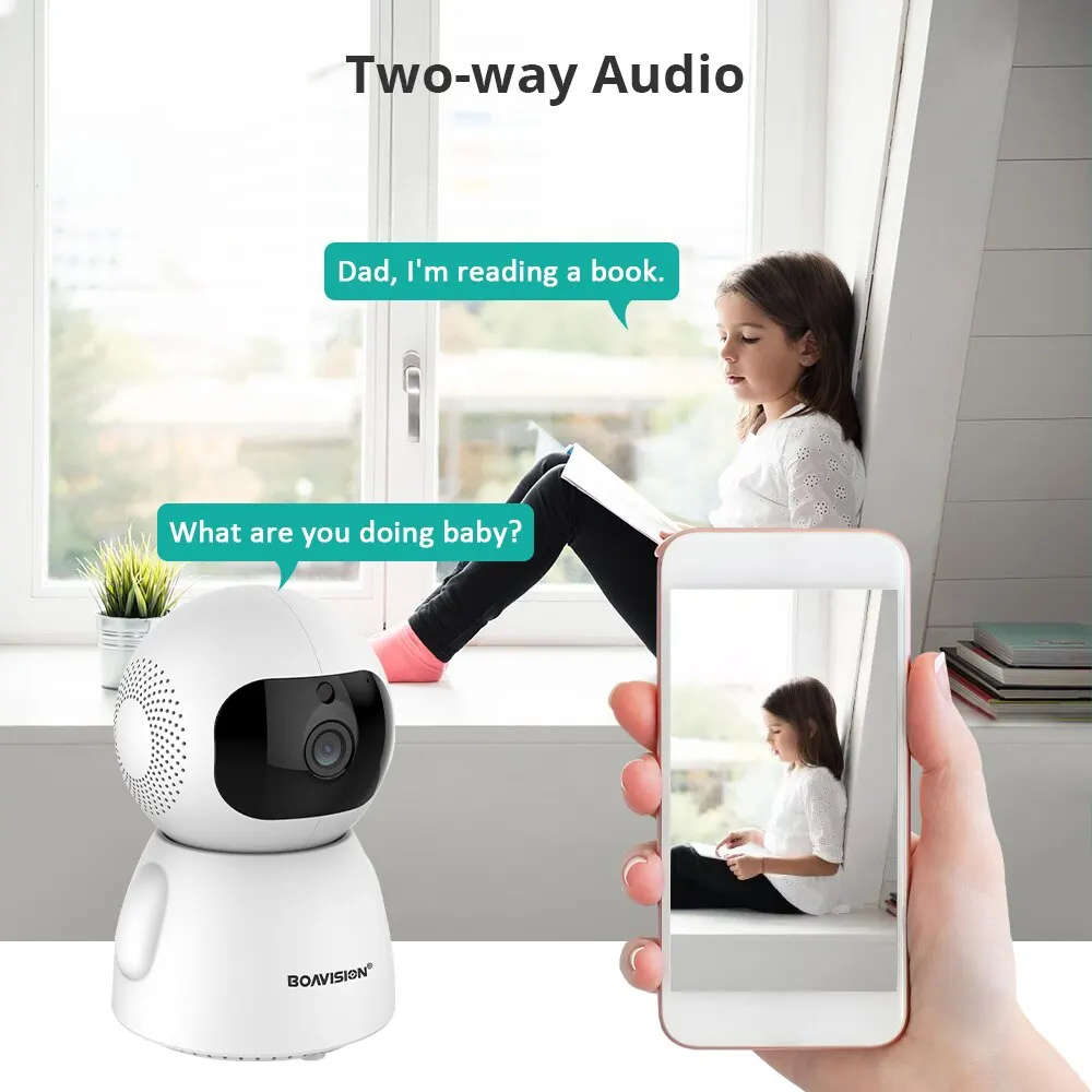Esta cámara de monitor para bebés con micrófono y altavoz mejorados incorporados, puede hablar con su familia cuando quiera o alertar a los intrusos, nunca se pierda ninguna parte importante de la vida familiar.