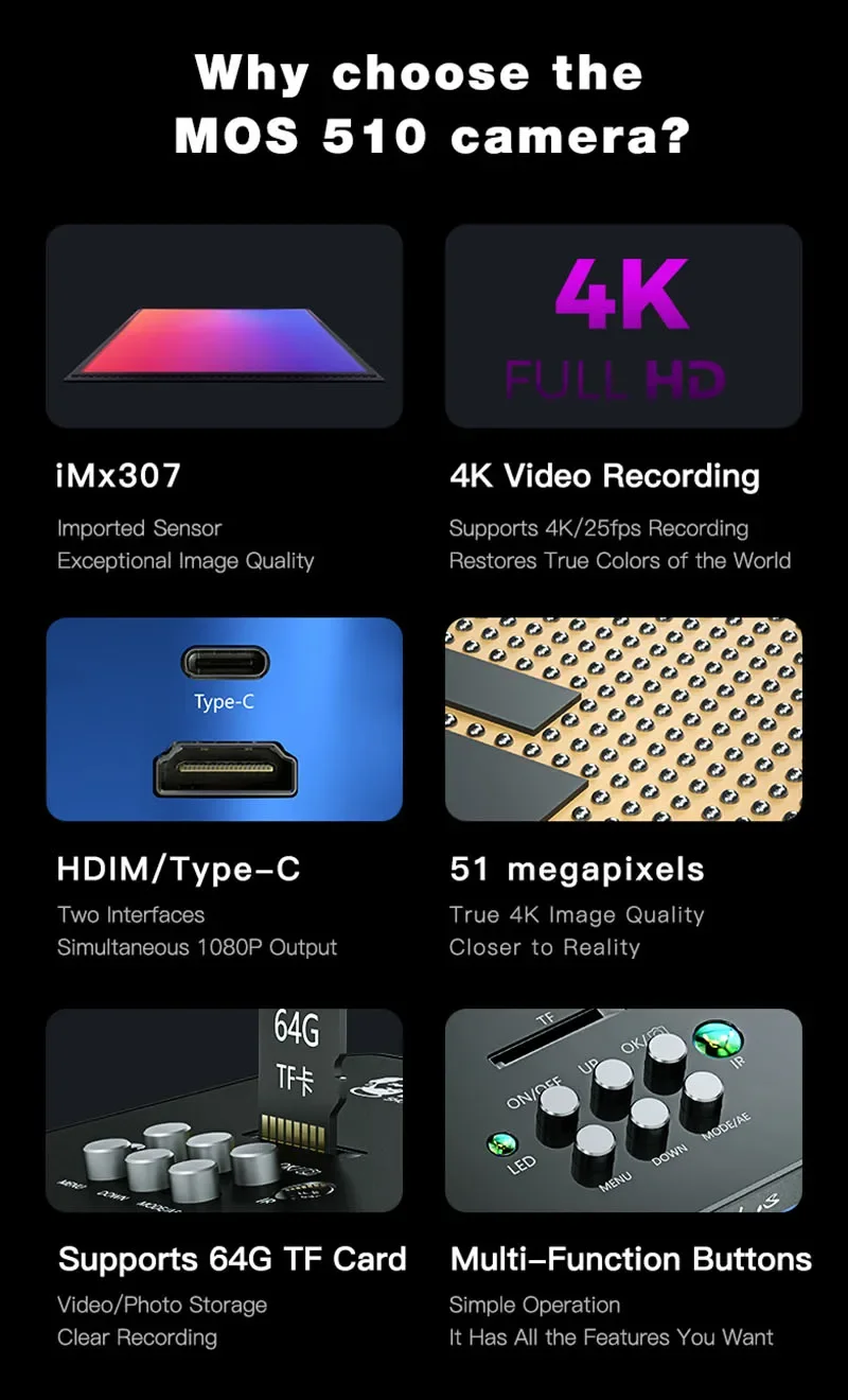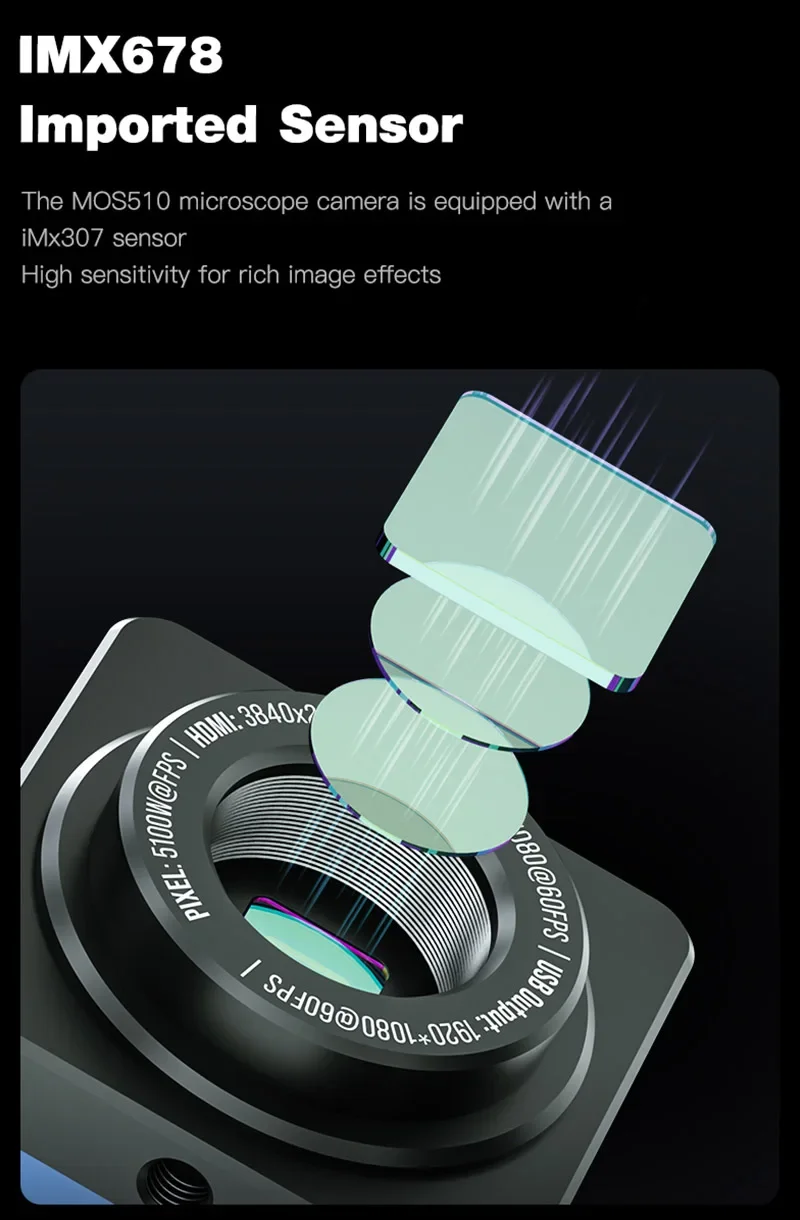 MECHANIC IMX 307/415/678 Sony Sensor 4K HD Cámara de microscopio industrial para reparación de soldadura de PCB Imagen de ultra alta resolución