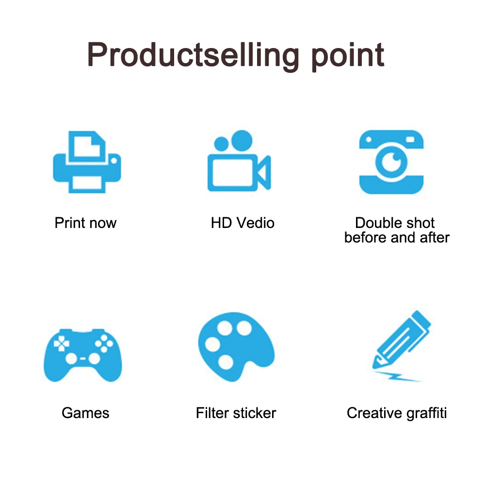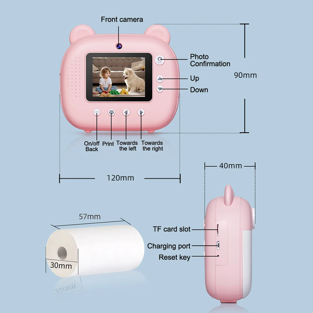 1.Función de impresión instantánea: utilice la impresora incorporada para tomar fotografías e imprimirlas al instante, lo que le permitirá compartir los recuerdos de su hijo de inmediato.