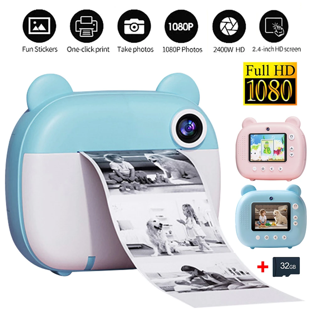 Cámara para niños, fotografía de impresión instantánea, 1080P HD, cámara Digital para niños y niñas, regalos de cumpleaños, juguetes con tarjeta de memoria de 32G