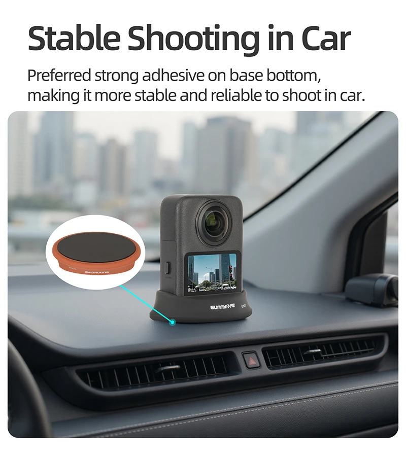 1.La parte inferior de la versión del automóvil es adhesiva, lo que fija firmemente la base del automóvil y realiza fácilmente fotografías deportivas en automóvil.