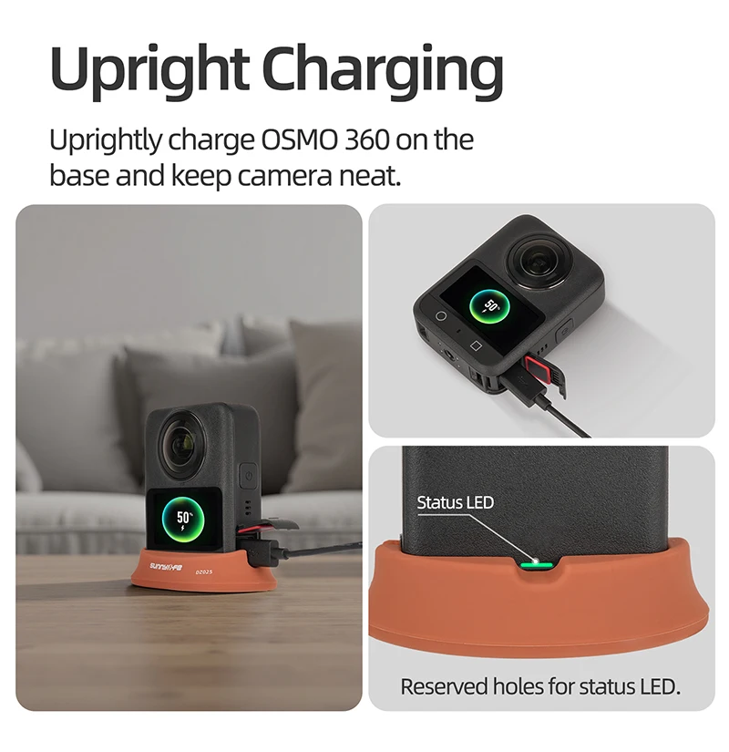 3.Carga vertical.La base se puede cargar en posición vertical, evitando golpes y rayones en el cuerpo y la lente cuando se carga en posición horizontal.