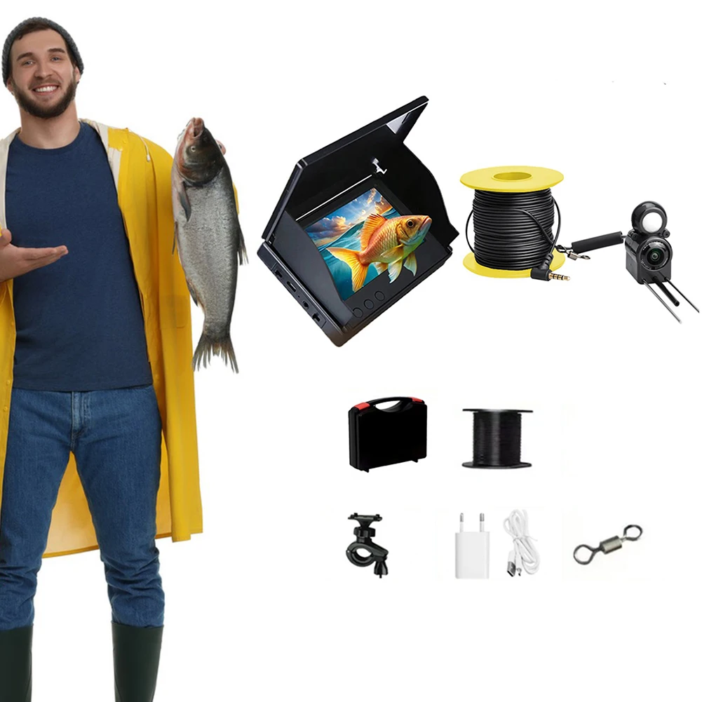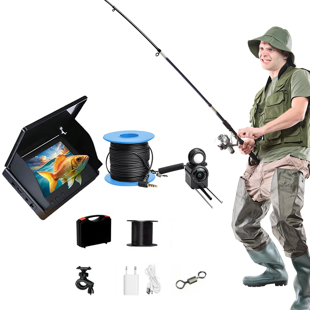 Cámara de pesca submarina Monitor IPS de 4,3 pulgadas cámara de pesca en hielo 220° Buscador de peces para pesca en hielo, visión nocturna, buscador de peces con vídeo portátil, Cable impermeable de 15/20/30m para pesca en barco en hielo y lago