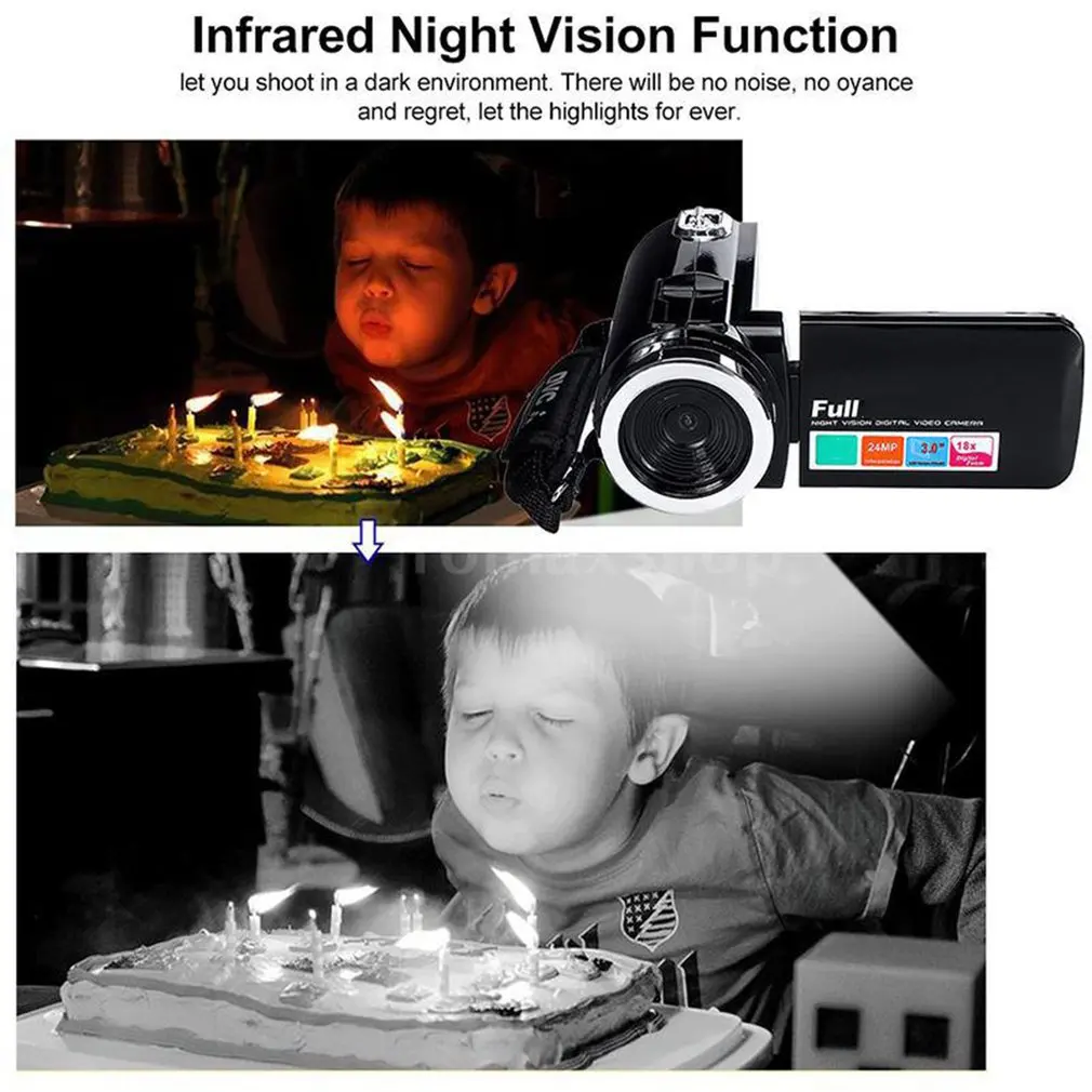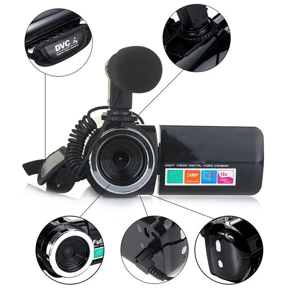 Comprar Cámara profesional de vídeo HD con visión nocturna, videocámara LCD de 3,0 pulgadas, Zoom Digital de 18x, con accesorio de micrófono