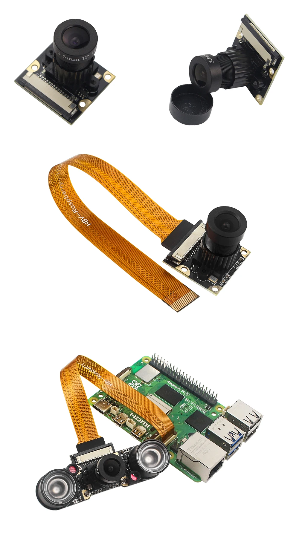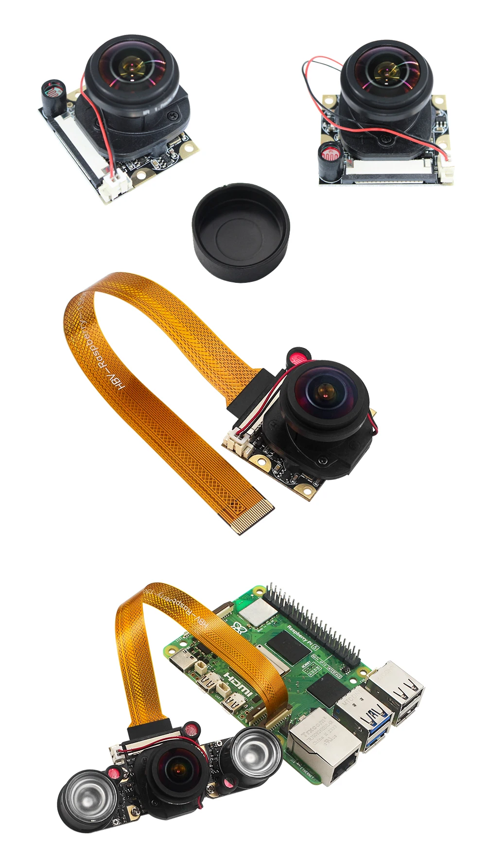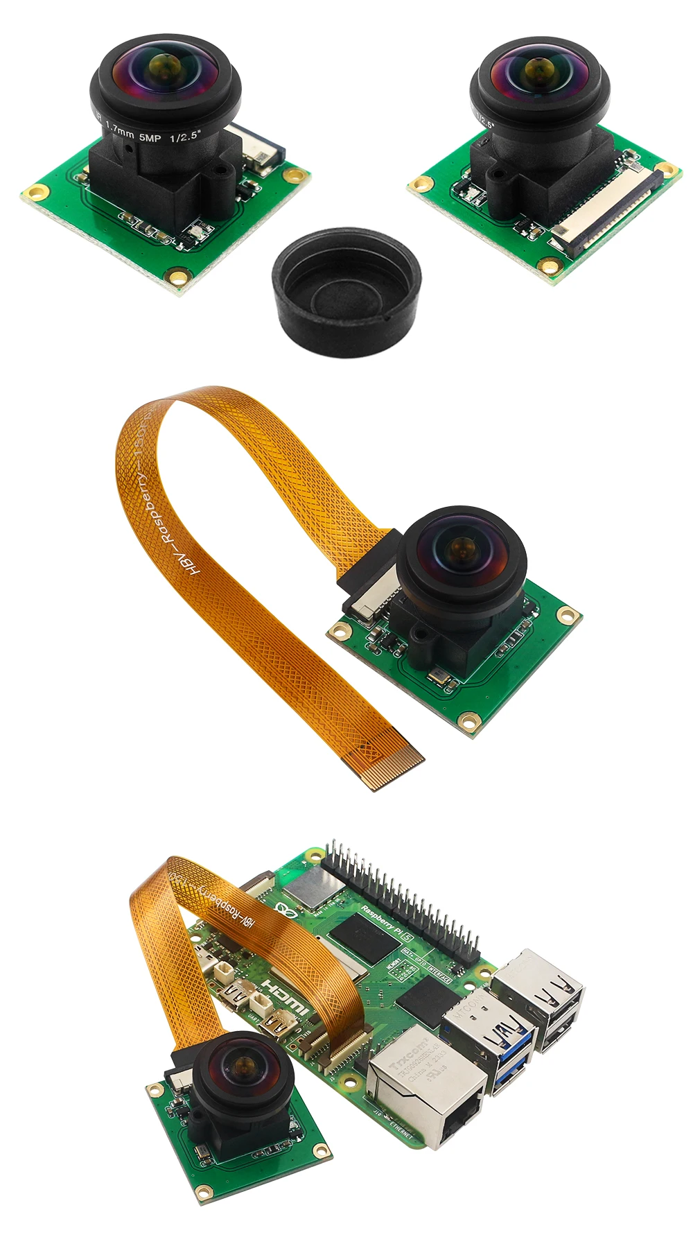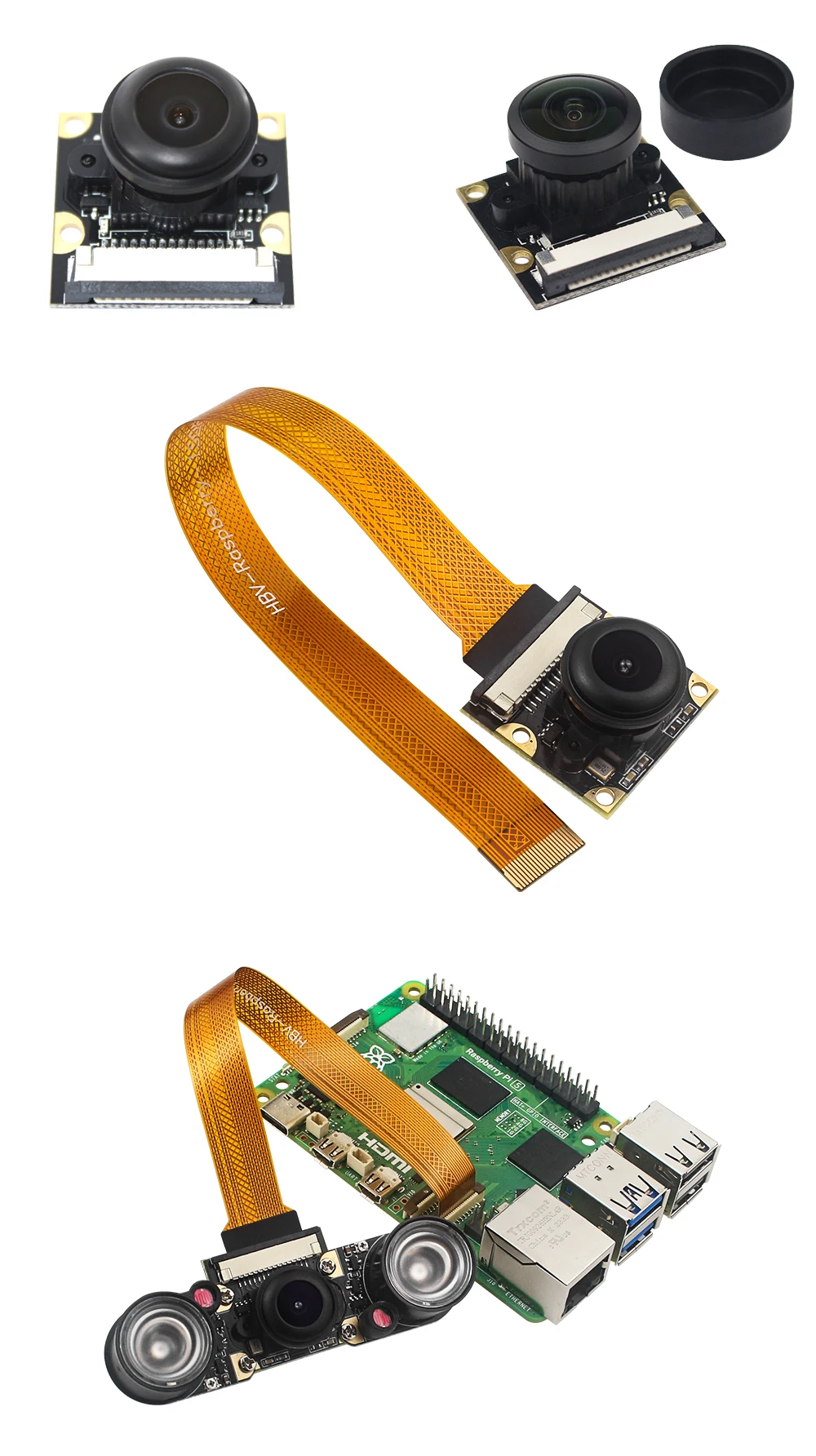 La cámara de 5MP 1080P para Raspberry Pi 5/Zero utiliza sensor OV5467, opción de cámara de visión nocturna, cámara gran angular ojo de pez o cámara IR_CUT según sus necesidades.