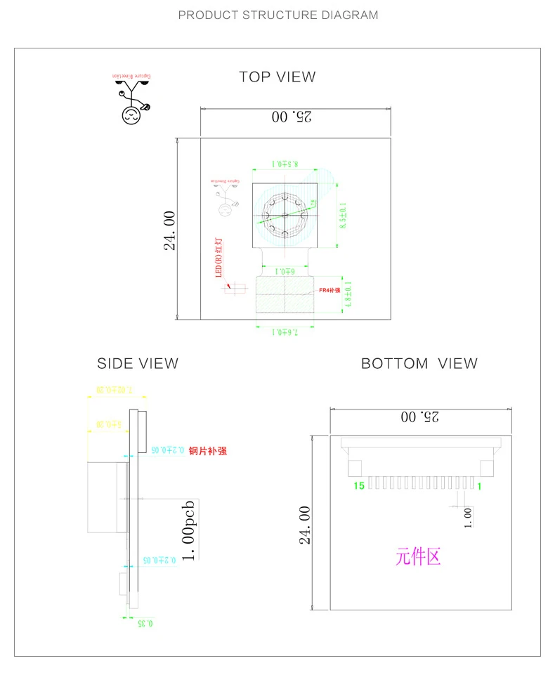 10.Dimensión: 25 mm x 24 mm x 6,4 mm