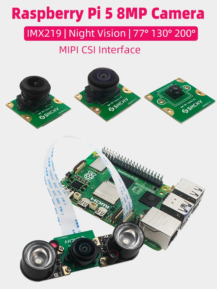 Cámara Raspberry Pi 5 8MP Sensor IMX219 77° 130° 200° Interfaz FOV Fisheye MINI CSI con FFC de 15 cm para RPI 5 Pi5