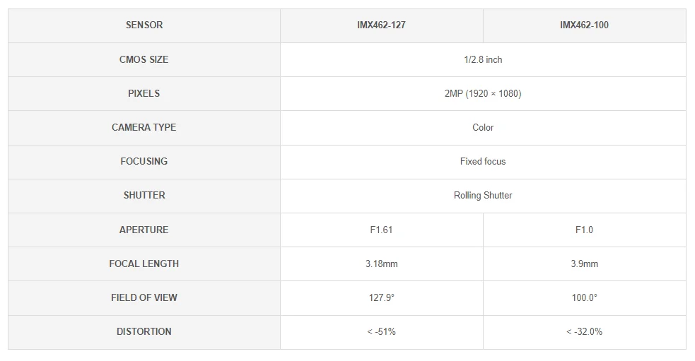 [] IMX462 2MP IR-CUT Camera, Starlight Camera Sensor, Onboard ISP, Fixed-Focus, Options for 127.9° / 100.0° FOV