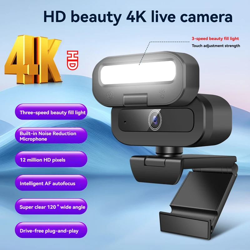 Comprar Cámara de red 4K de alta definición con luces, belleza con un clic, seguimiento automático de enfoque, videoconferencia, cursos en línea