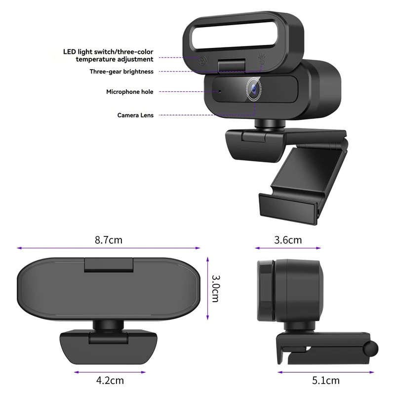 Nombre del producto: cámara de computadora con luz de relleno
