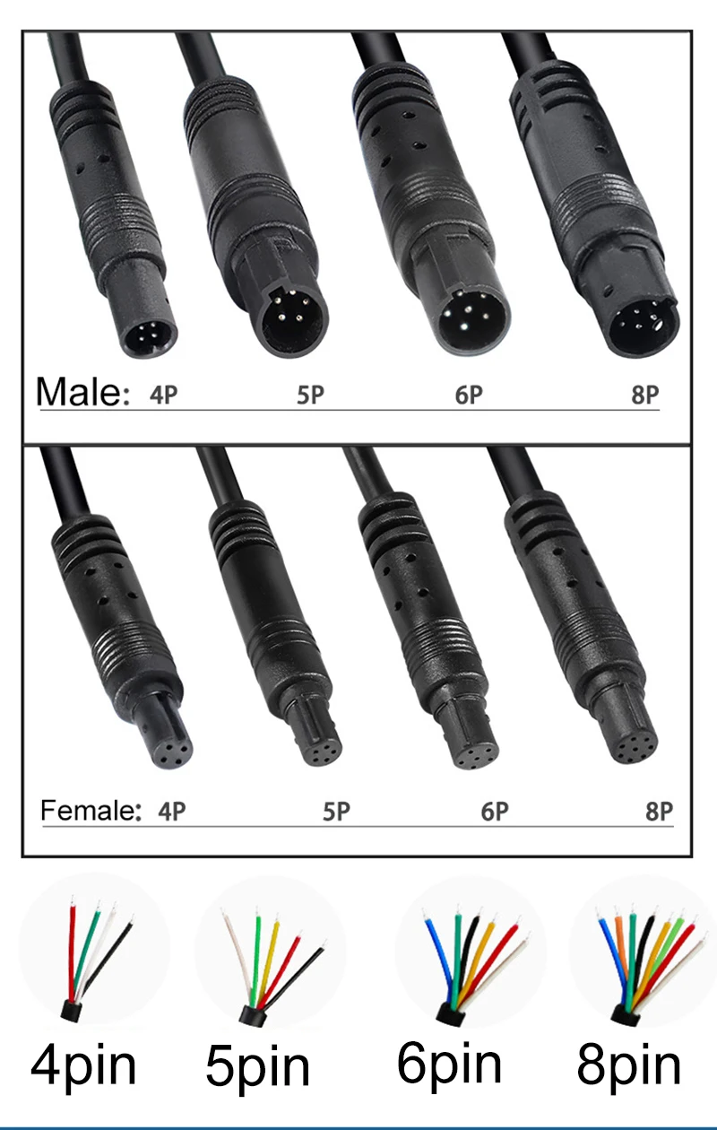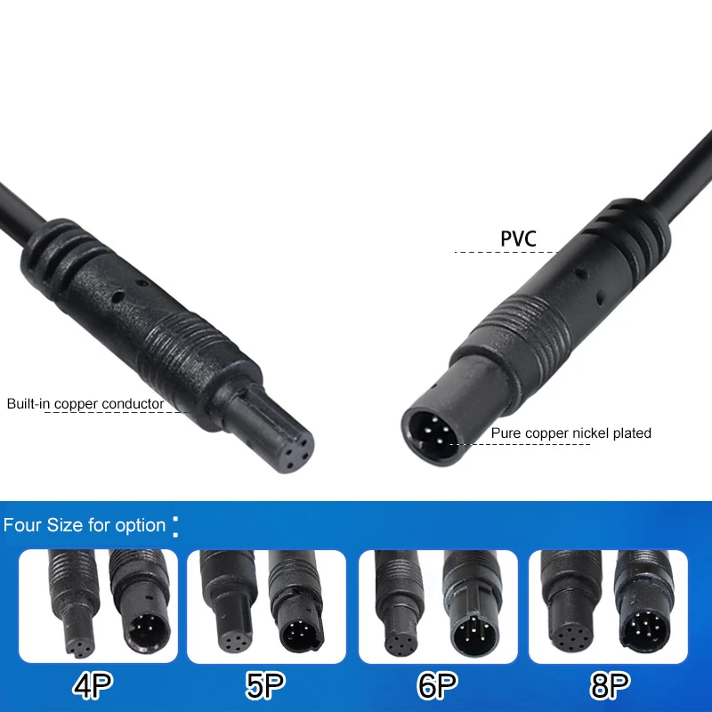 Cable de 4 pines para cámara de coche1. Alambre2464-28AWG2. Alambre Cobre7/0.12BC * 4C/5C/6C/8C para la opción3. Diámetro exterior3,0mm4. Color de la chaquetaPVC5. Color del núcleoNegro6. Conductor MateraiCobre desnudo7. Material aislantePVC8. UsoIluminación exterior LED, sensor, bicicleta eléctrica9. GéneroDe macho a hembraEl paquete incluye
