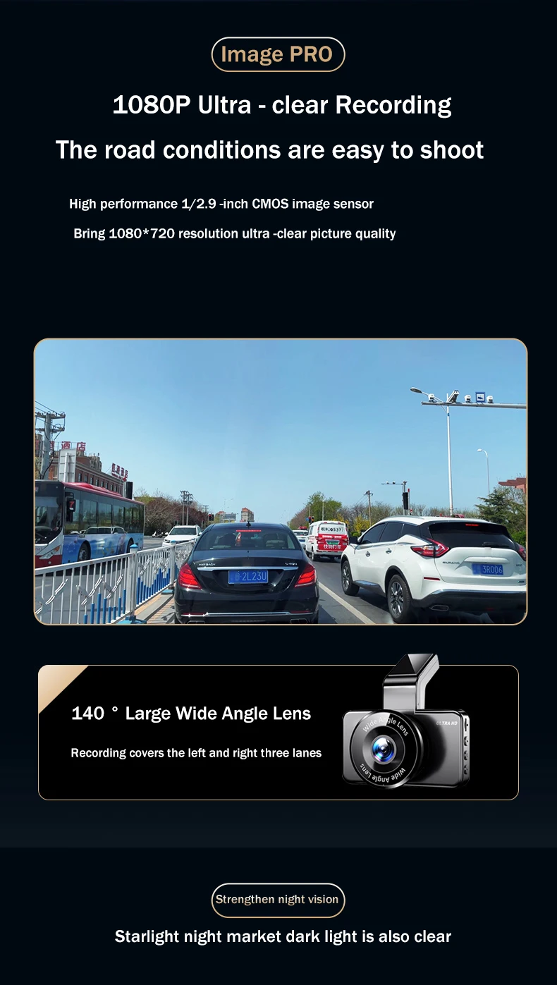 3. HD 1296P para una conducción segura: con una resolución de 1920*1296P, nuestra Cámara de tablero captura detalles importantes como matrículas y señales de tráfico, lo que garantiza imágenes de calidad para garantizar la seguridad de conducción.