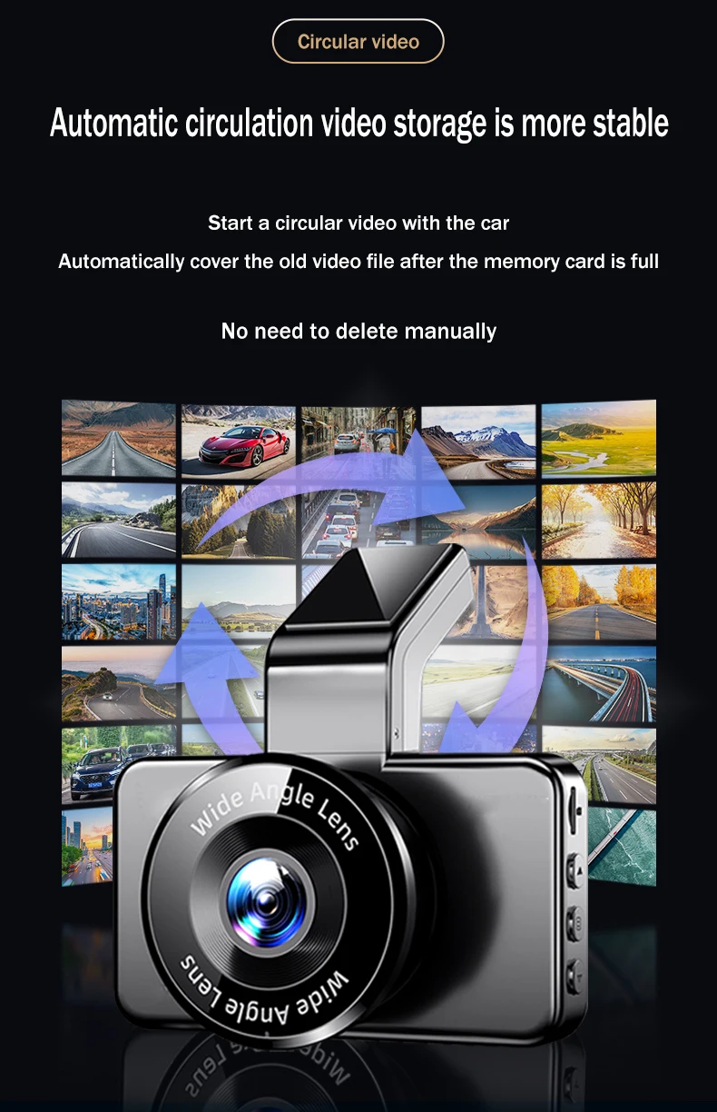 5. Ahorro automático de videos importantes: cuando la tarjeta de memoria está llena, nuestra grabadora de video del coche sobrescribirá automáticamente los videos anteriores, pero los videos importantes, como las imágenes de colisión, nuestra grabadora de vídeo del coche sobrescribirá automáticamente los vídeos anteriores, Pero los videos importantes, como las imágenes de colisión, no se sobrescribirán, protegiendo la evidencia crucial en caso de un accidente.