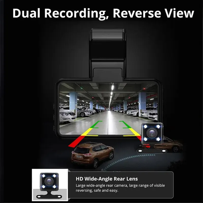 2. Grabación de la lente dual: Con una cámara frontal 1296P y 720p cámara trasera, nuestro coche DVR puede grabar imágenes de alta definición de la carretera por delante y detrás al mismo tiempo.