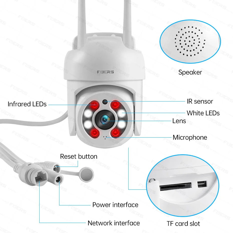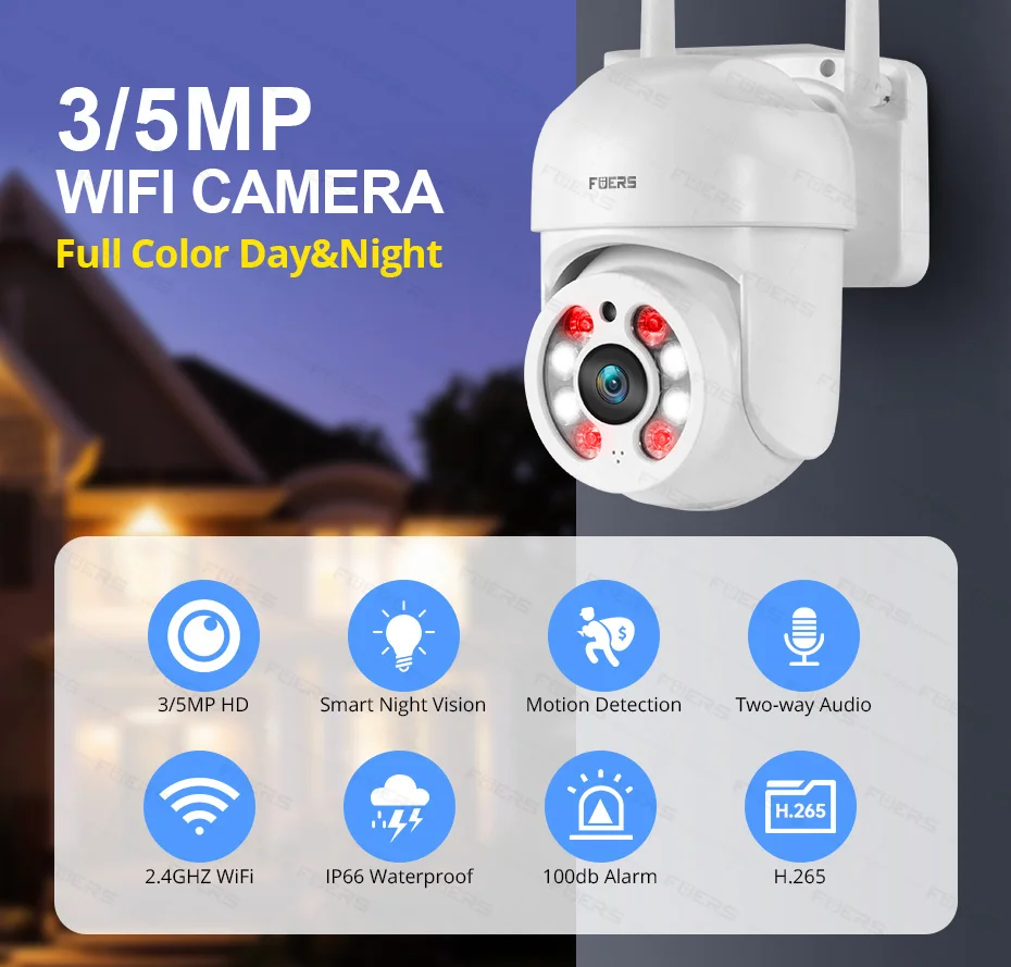 Fuers Cámara al aire libre es impermeable (IP66) y permite el uso al aire libre. La cámara funciona perfectamente tanto dentro como fuera de su casa, incluso en condiciones climáticas adversas.