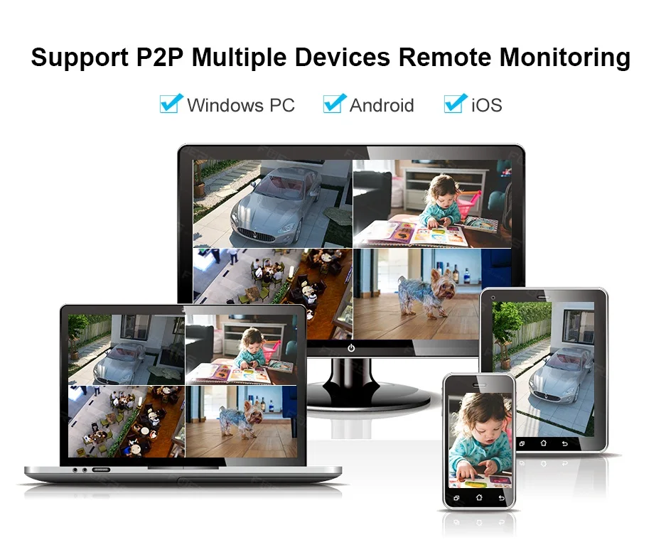 Acceda de forma remota a la Cámara IP para ver la visualización en vivo y las grabaciones a través de la aplicación en su dispositivo móvil o en los navegadores web de la computadora