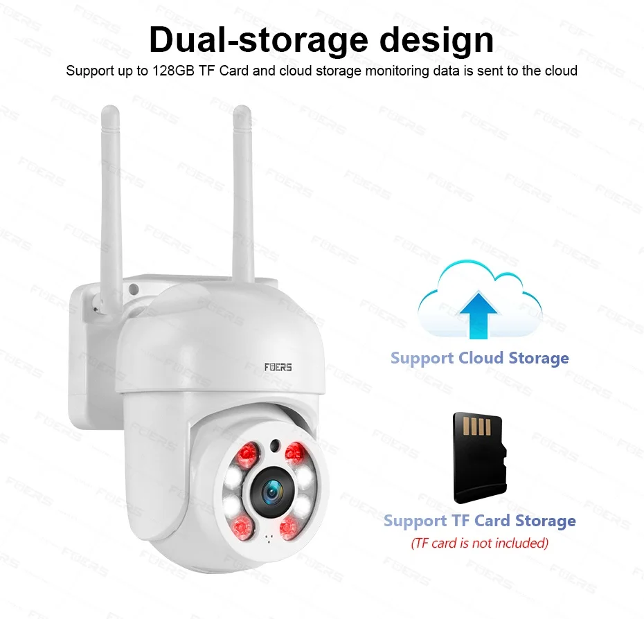 La cámara admite hasta 128GB TF Tarjeta de copia de seguridad local y también proporciona servicio de almacenamiento en la nube (necesidad de pagar una tarifa adicional)