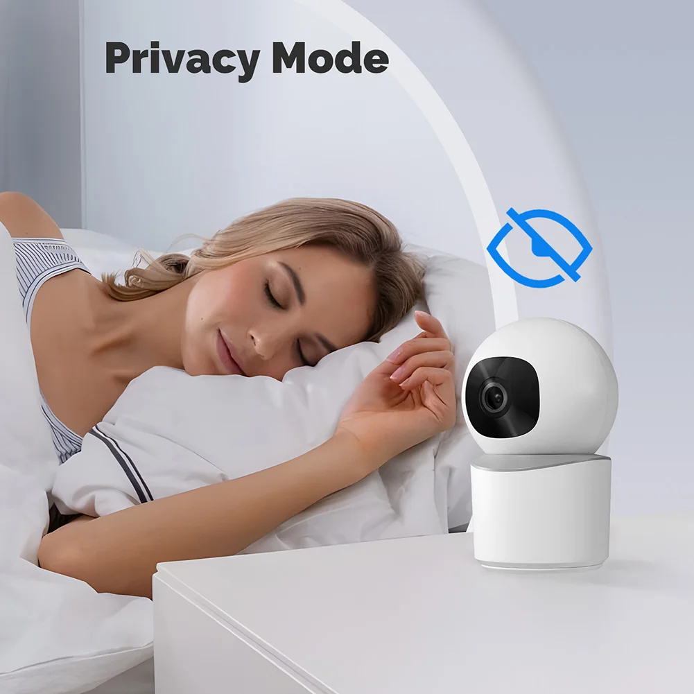 5. Modo de Protección de Privacidad:La cámara de monitor inalámbrica admite una función de protección de privacidad con un solo clic, lo que garantiza la privacidad y la seguridad de los miembros de su familia cuando sea necesario. Además, ofrece seguimiento de movimiento, siguiendo automáticamente cualquier objeto en movimiento no identificado o intruso dentro de su rango para proporcionar imágenes en tiempo real.