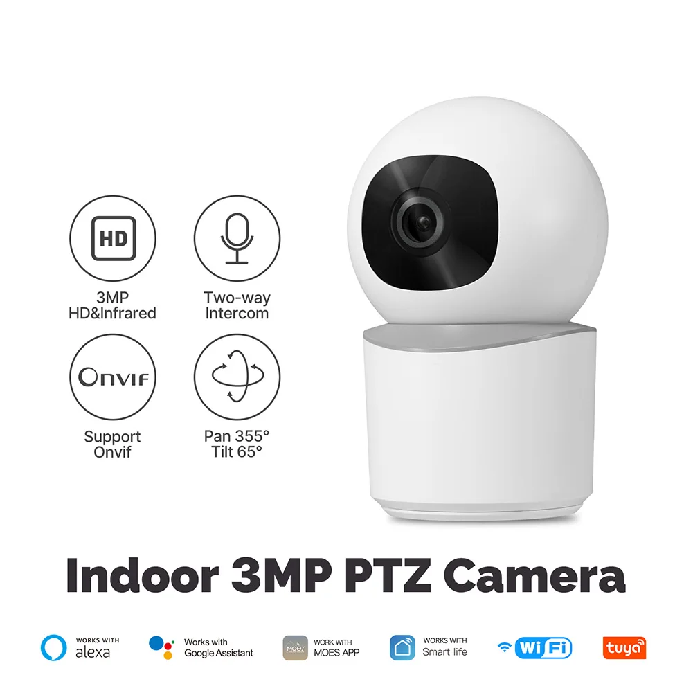Comprar Cámara de seguridad inteligente Pan/Tilt para interiores con WiFi, visión nocturna infrarroja, Monitor inalámbrico de 3MP, detección de movimiento de Audio bidireccional