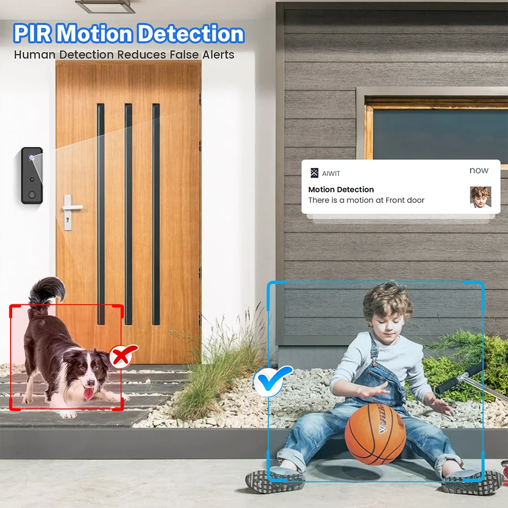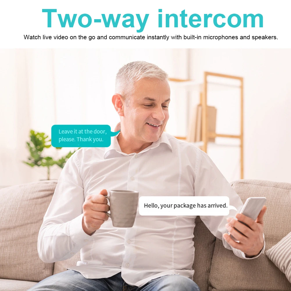 1.Detección de movimiento PIR y conversación bidireccional:Active el movimiento PIR y la detección humana para recibir alertas cuando se detecte actividad.La cámara del timbre inalámbrico le permite ver y hablar de forma segura con el personal de entrega en su casa.
