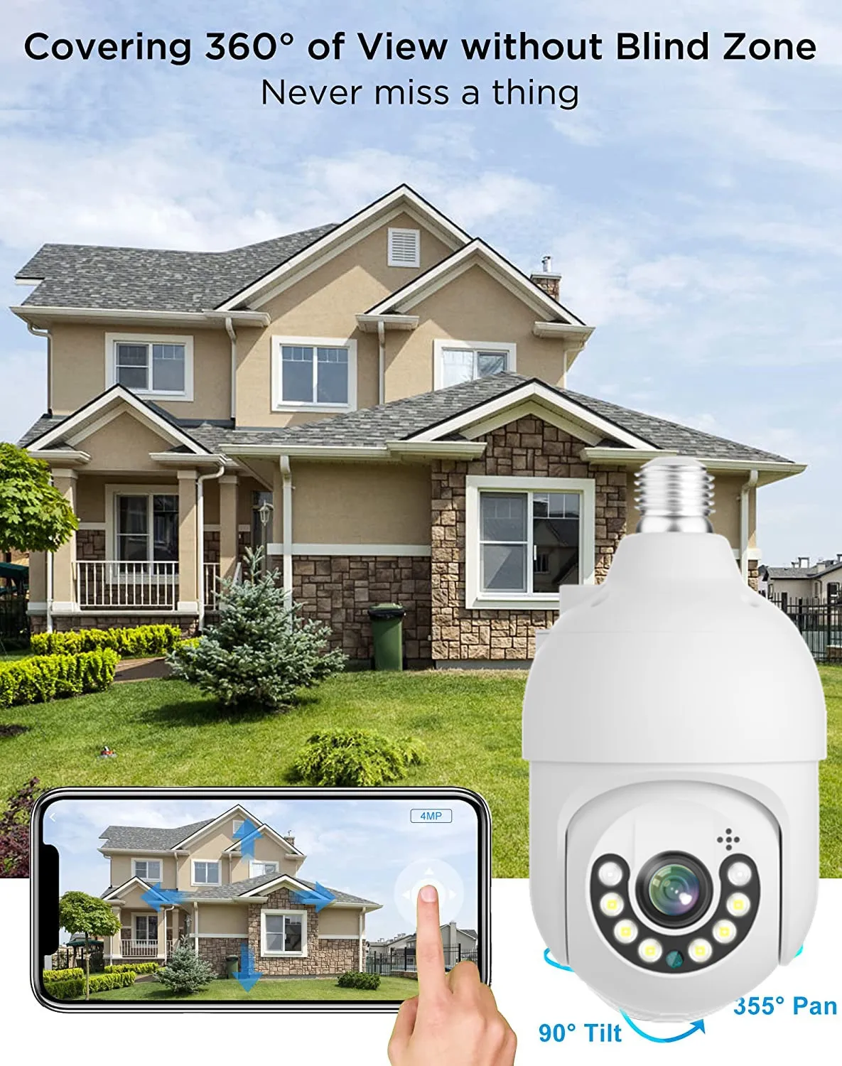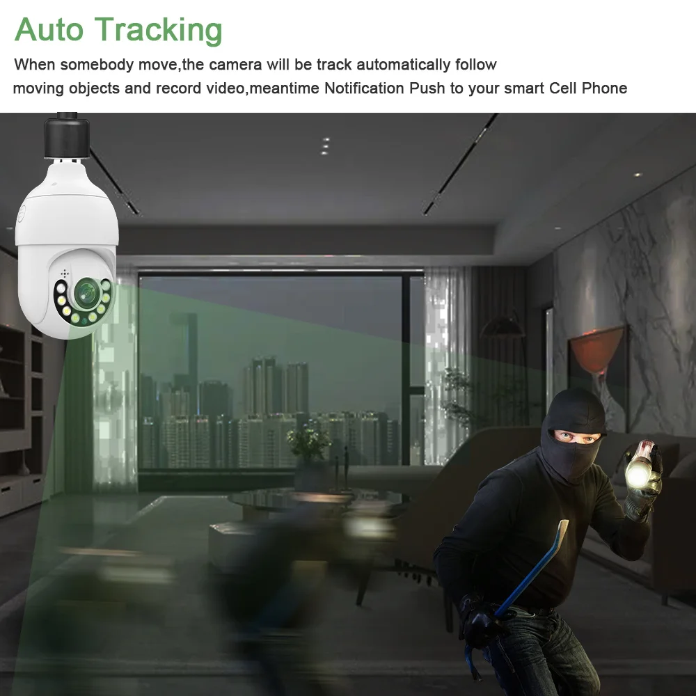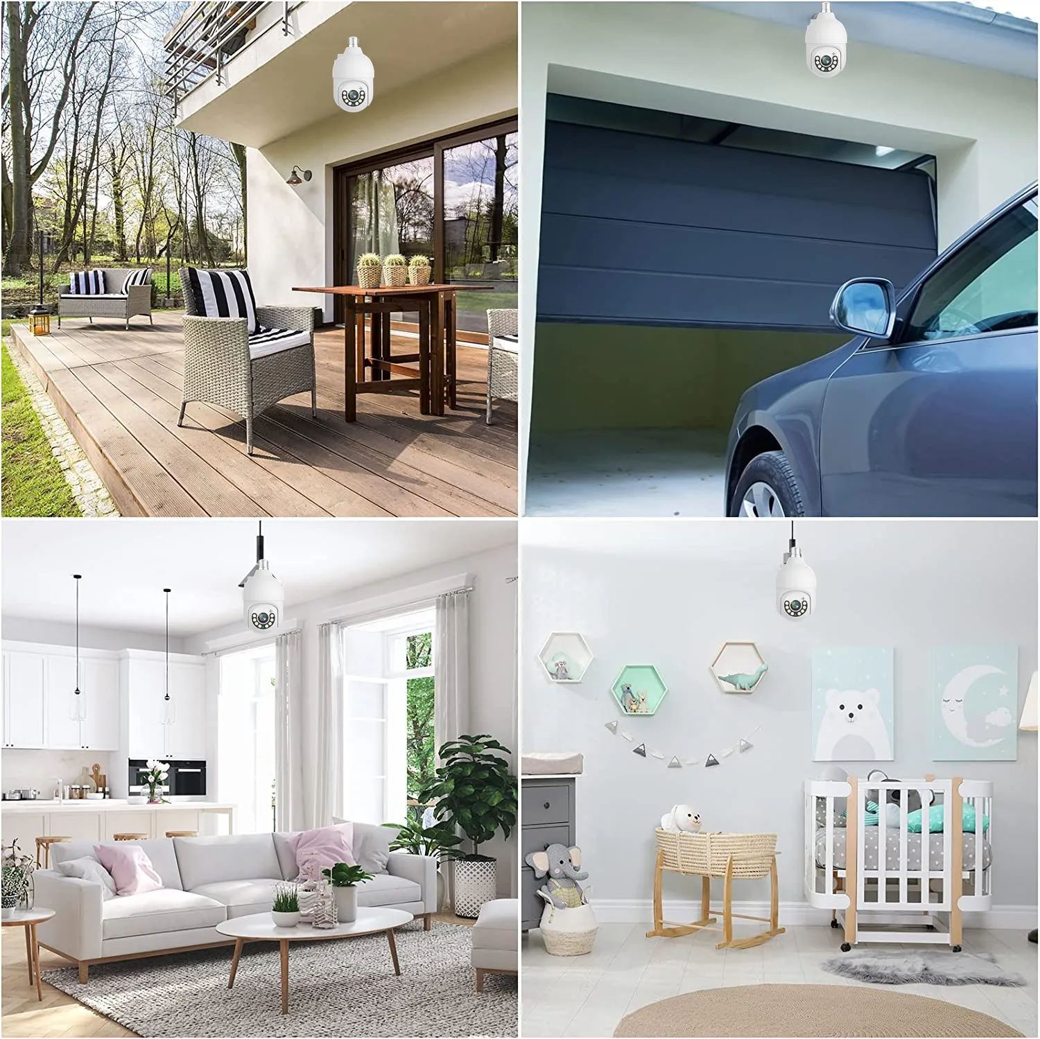 Cámara de vigilancia E27 con bombilla 5G, visión nocturna a todo Color, seguimiento humano automático, Zoom, Monitor de seguridad interior, cámara Wifi