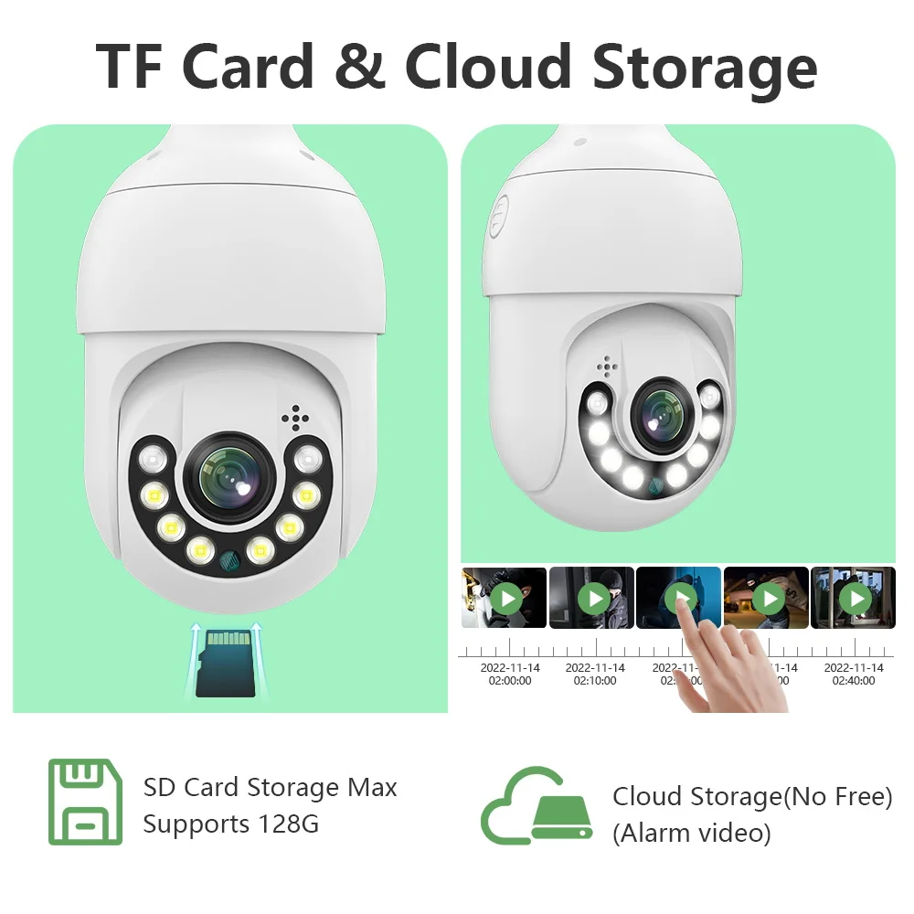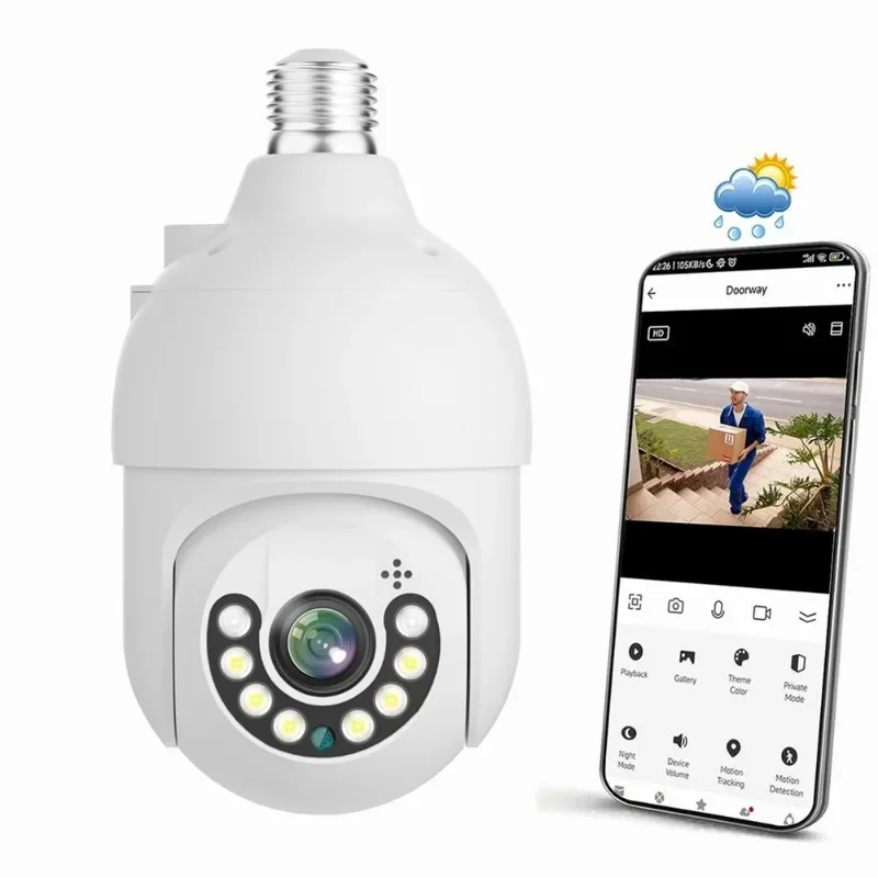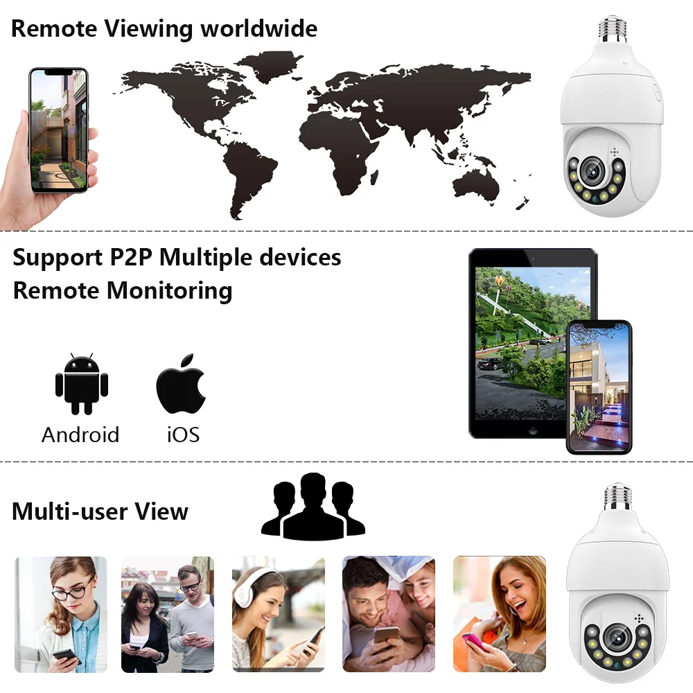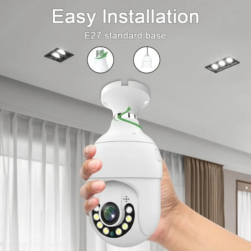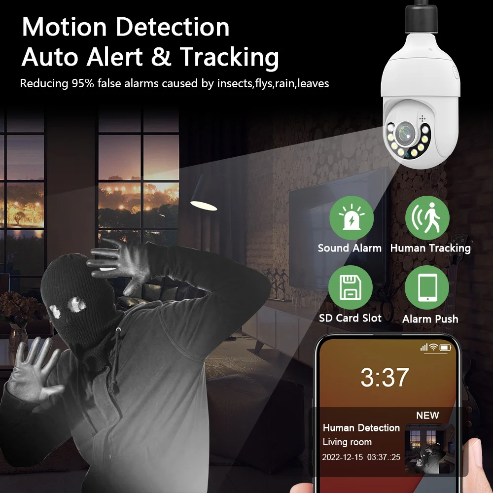 Cámara de vigilancia E27 con bombilla 5G, visión nocturna a todo Color, seguimiento humano automático, Zoom, Monitor de seguridad interior, cámara Wifi