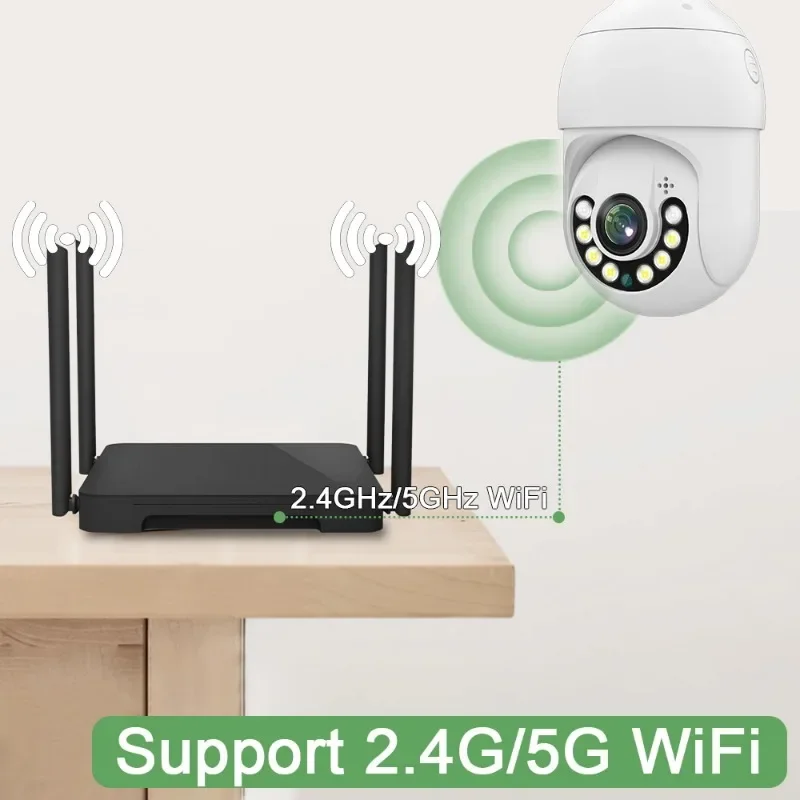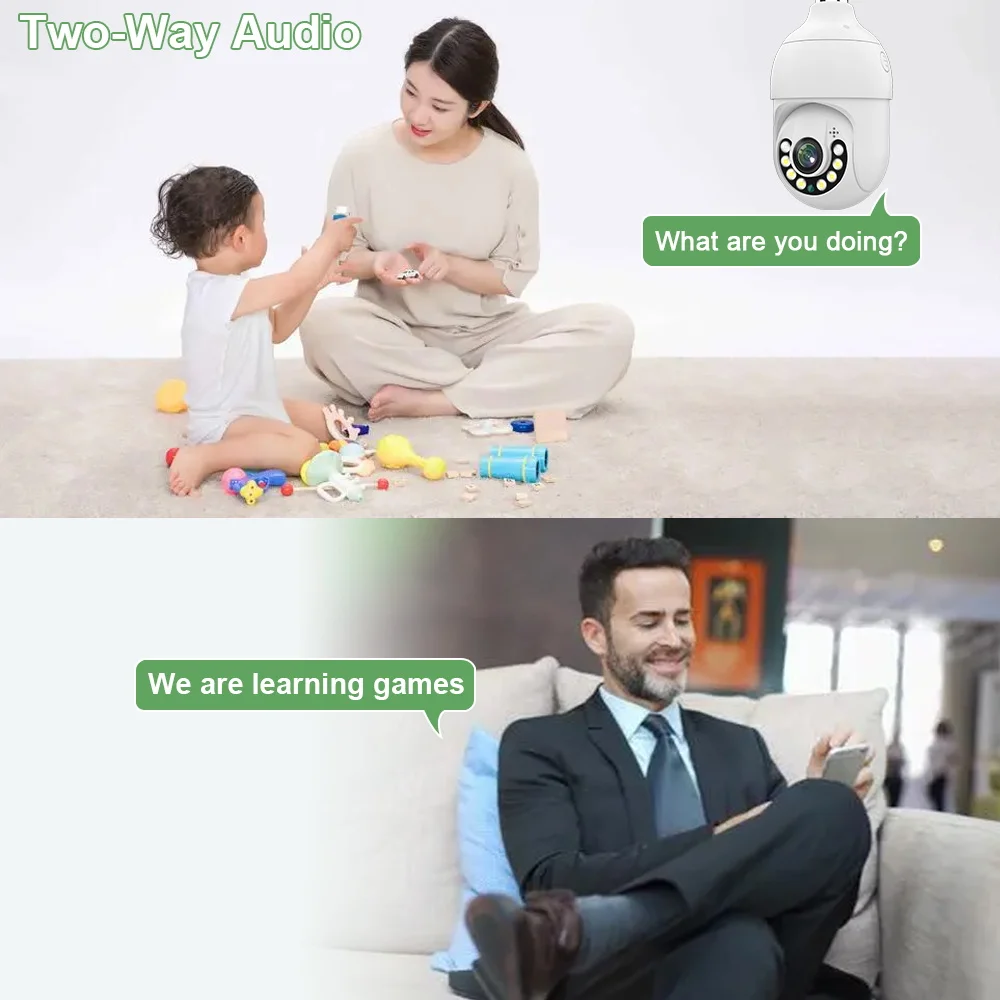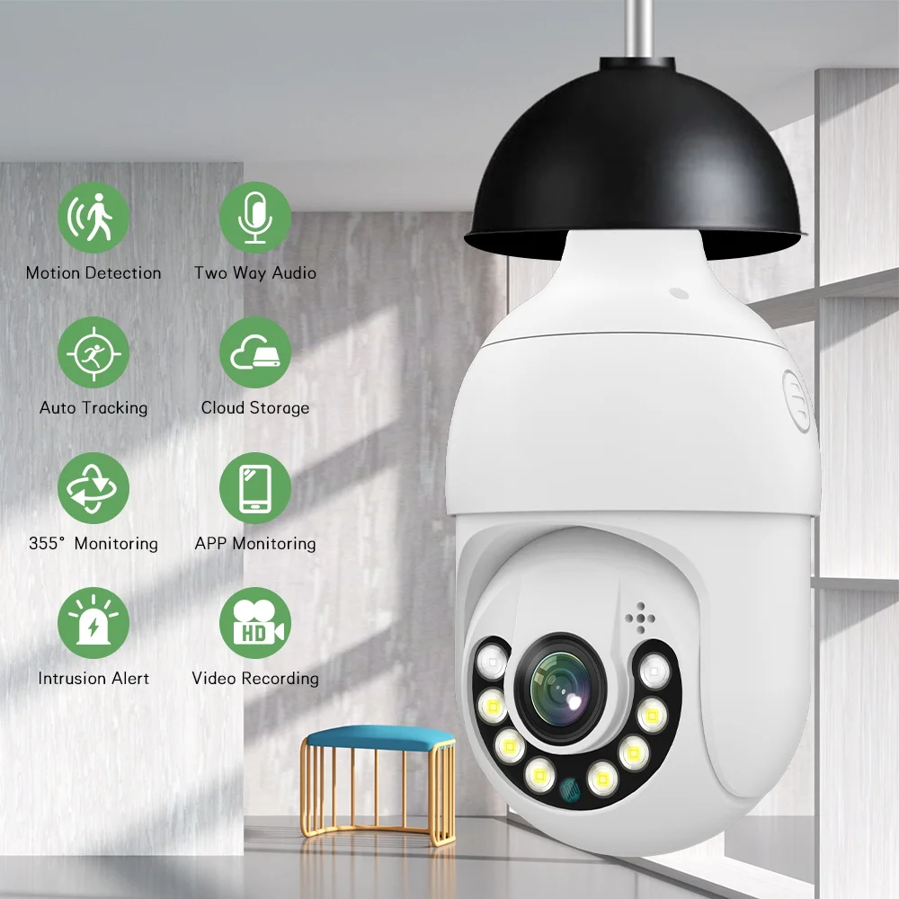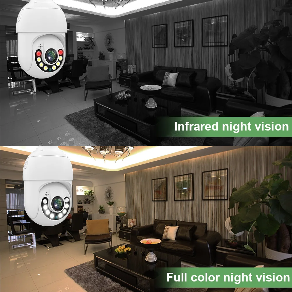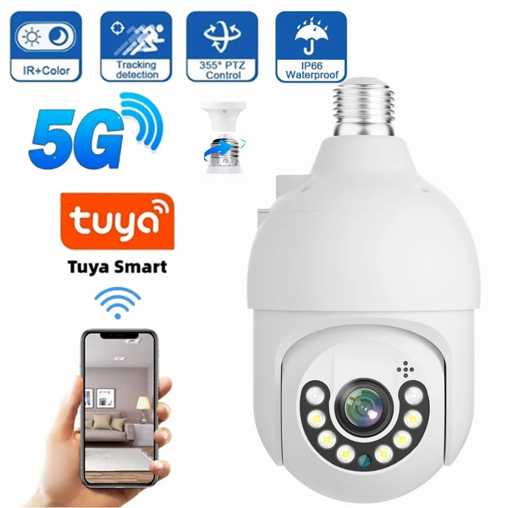 Cámara de vigilancia con bombilla 5G E27, visión nocturna a todo Color, seguimiento humano automático, Zoom, Monitor de seguridad interior, cámara Wifi