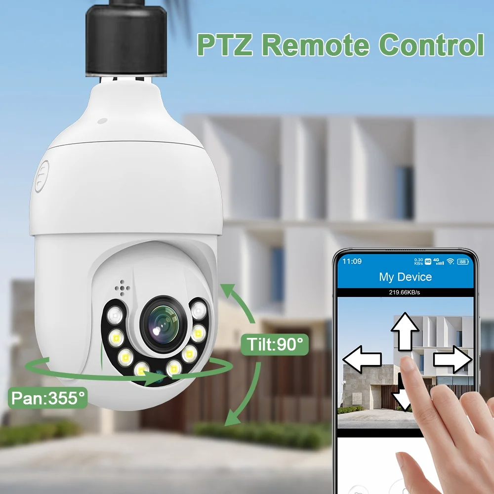 Comprar Cámara de vigilancia con bombilla 5G E27, visión nocturna a todo Color, seguimiento humano automático, Zoom, Monitor de seguridad interior, cámara Wifi