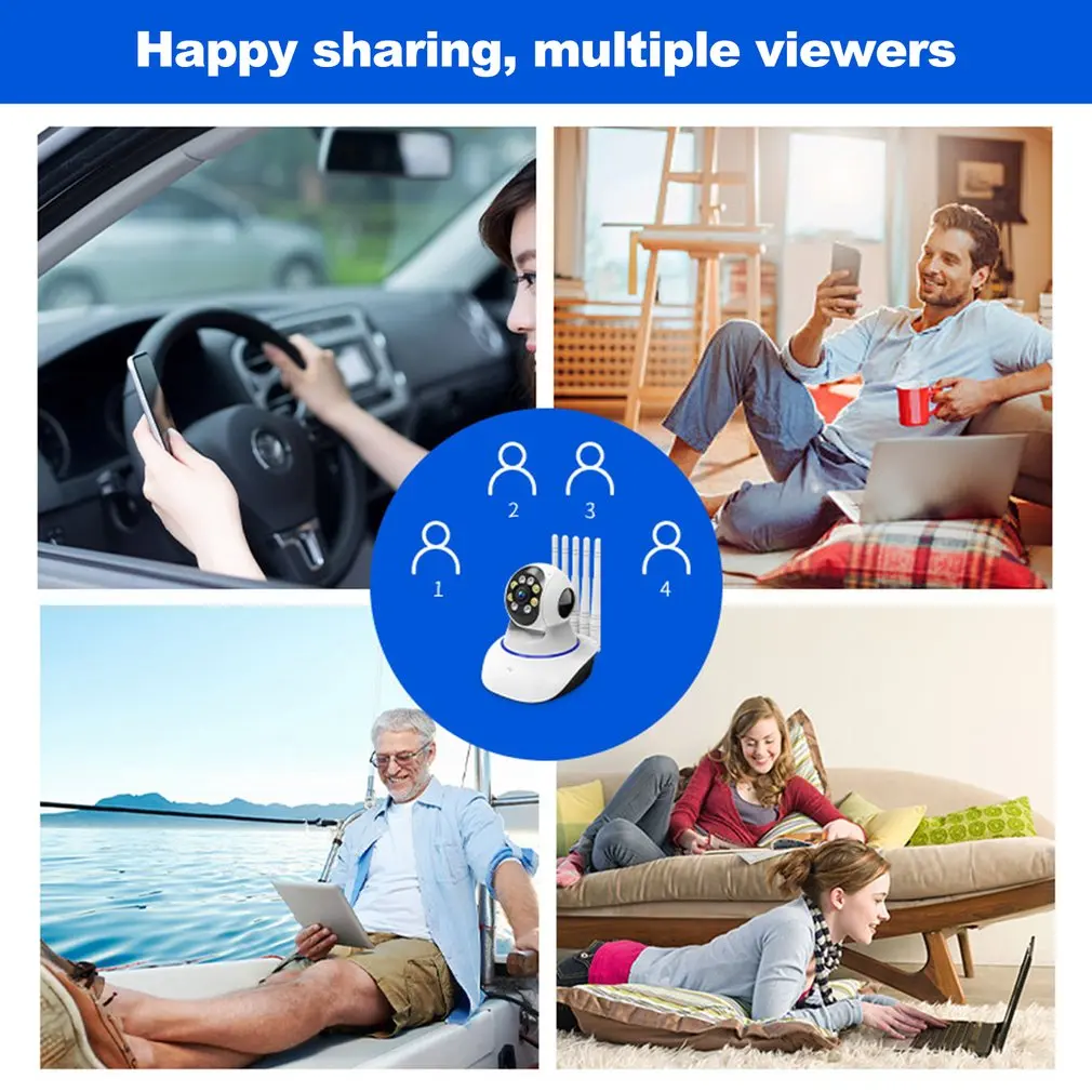 Esta cámara de vigilancia puede monitorizar tu habitación desde múltiples ángulos. Solo necesitas establecer una conexión wifi para sincronizar tu teléfono móvil. Incluso puede tener una conversación en tiempo real con la persona que se observa, con voz clara y casi sin retraso. La función de detección nocturna que lleva le permite controlar la seguridad de su habitación, ya sea de día o de noche.