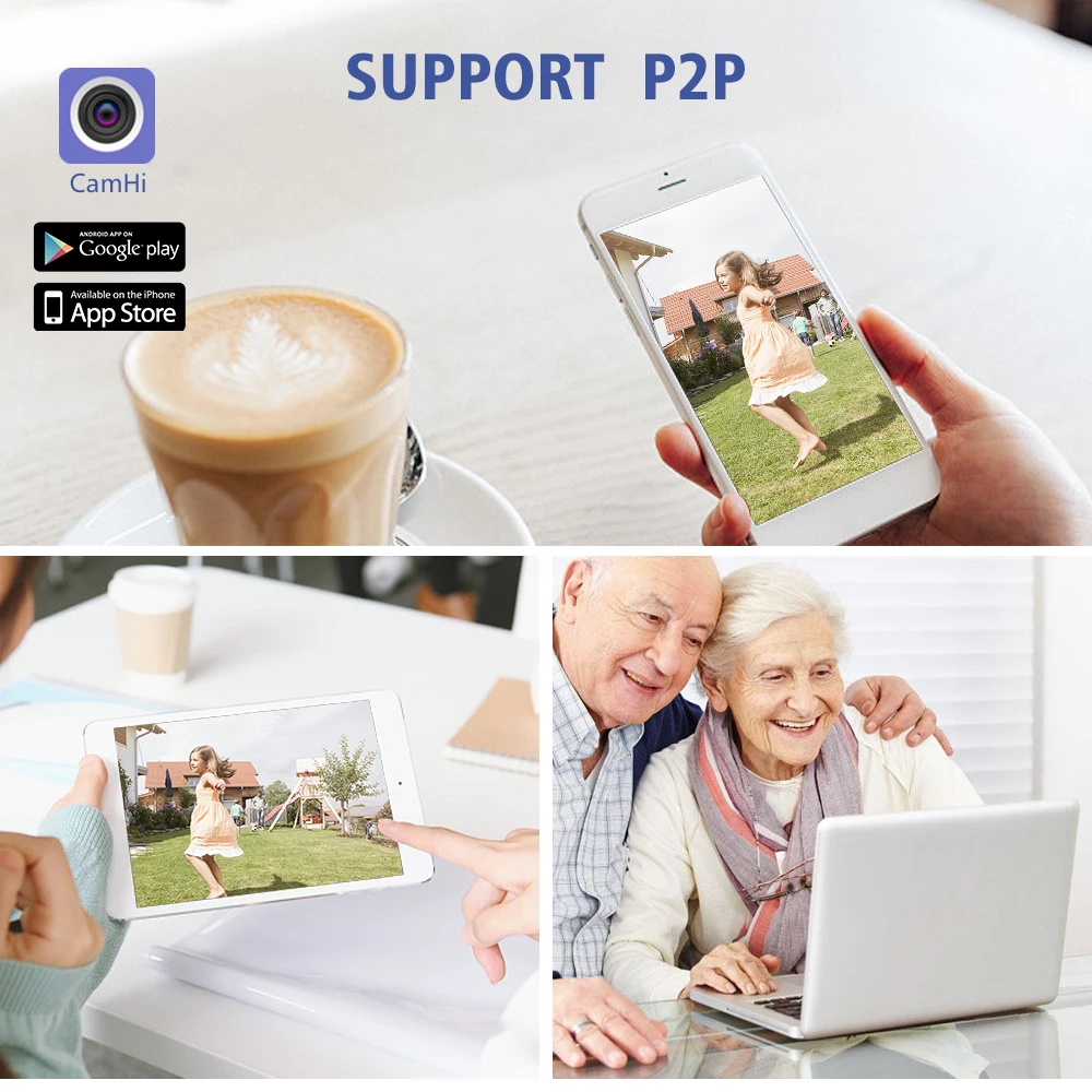 Compatible con Smartphone CamHi APP (iOS, Android), tabletas (iPad, Android), Windows PC CMS cliente. Esta es la forma más conveniente de ver desde cualquier lugar y en cualquier momento.