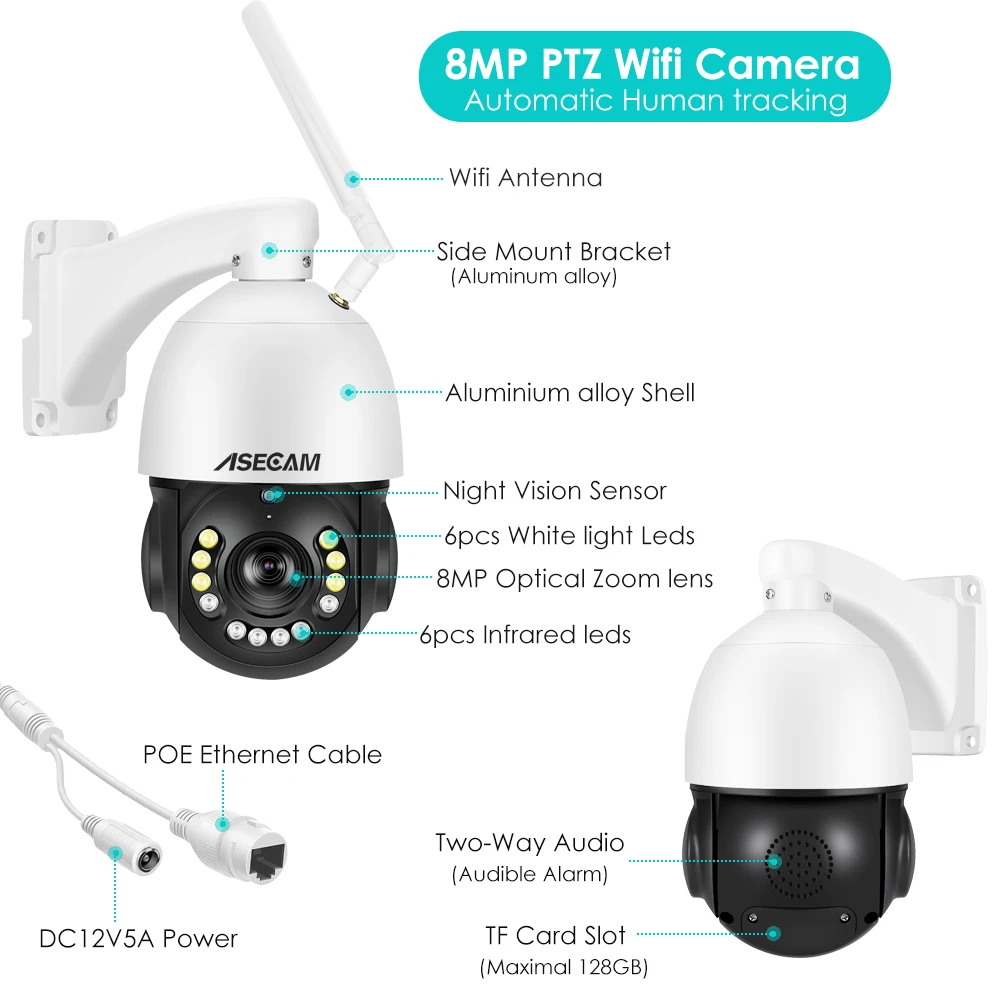 En comparación con el WIFI inalámbrico que solo se puede conectar a 2,4G, la tecnología de transmisión WiFi de doble banda puede admitir la identificación automática y la conexión de señales de 2,4G y 5G, que puede adaptarse bien a las necesidades de las redes inalámbricas en diferentes entornos. Al mismo tiempo, la Cámara ASECAM 4K también tiene su propio punto de acceso AP, que se puede conectar a la red de telefonía móvil para una monitorización en tiempo real sin WiFi.