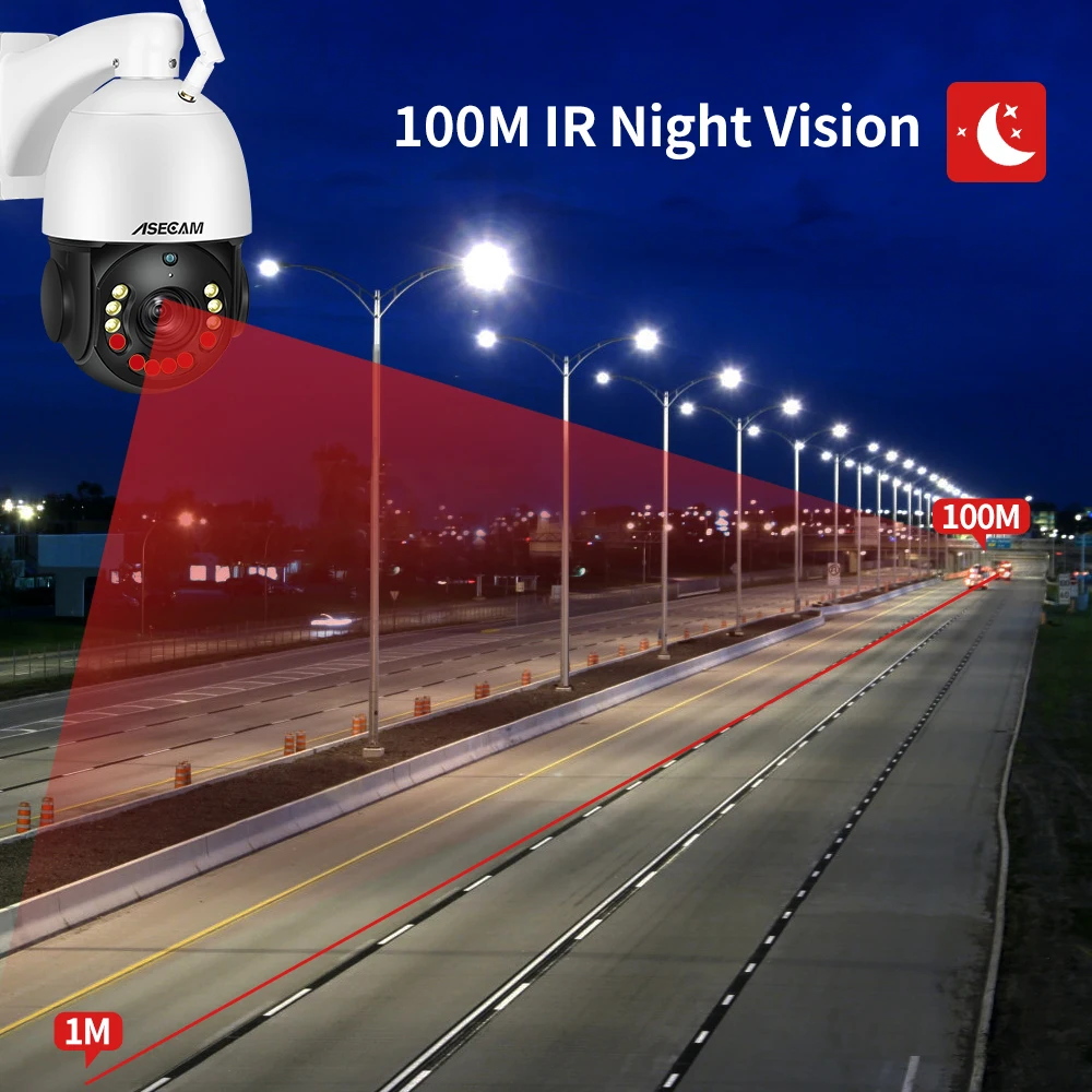El zoom óptico motorizado 30x le permite acercar para ver más detalles de objetos lejanos sin perjudicar la calidad de la imagen o alejar para obtener una vista más amplia y grande (36 ° ~ 100 °). Controla el zoom de 30x que gira a través de la PC NVR y el teléfono inteligente.