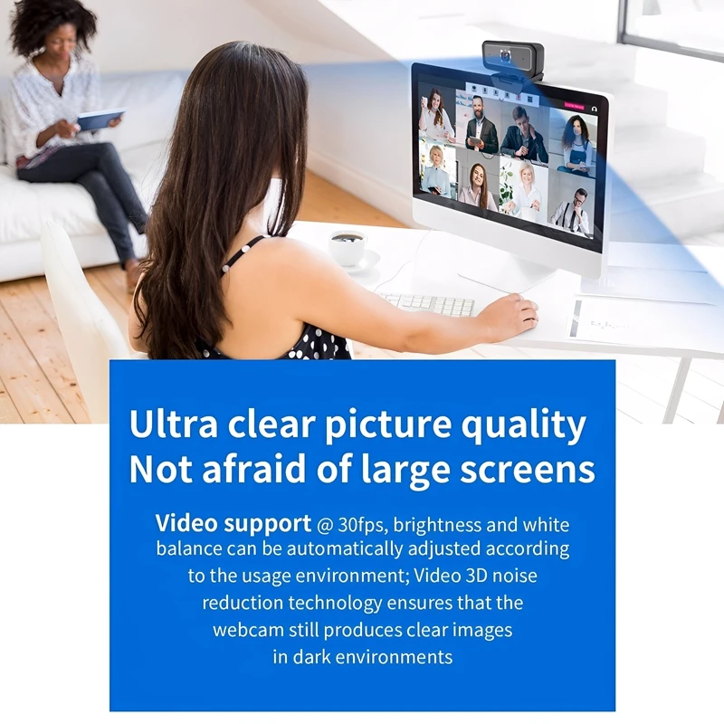 Ventajas del producto: cubierta de privacidad física, blindaje más seguro, micrófono digital incorporado, reducción de ruido y sin ruido, enfoque automático, alta sensibilidad y gran angular de 120.