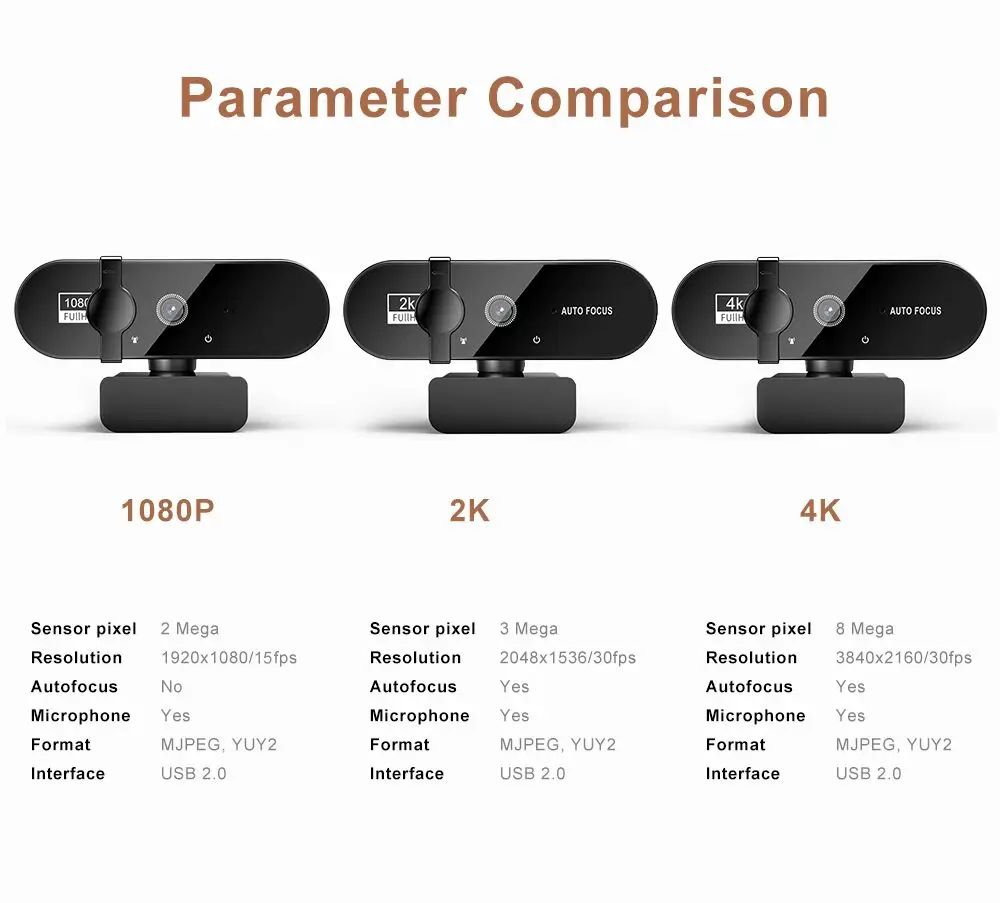 Comprar Cámara Web 4K 2K para ordenador, Webcam con micrófono, trípode, autoenfoque, Mini Usb, Full Hd, para PC, Mac y portátil, 1080P