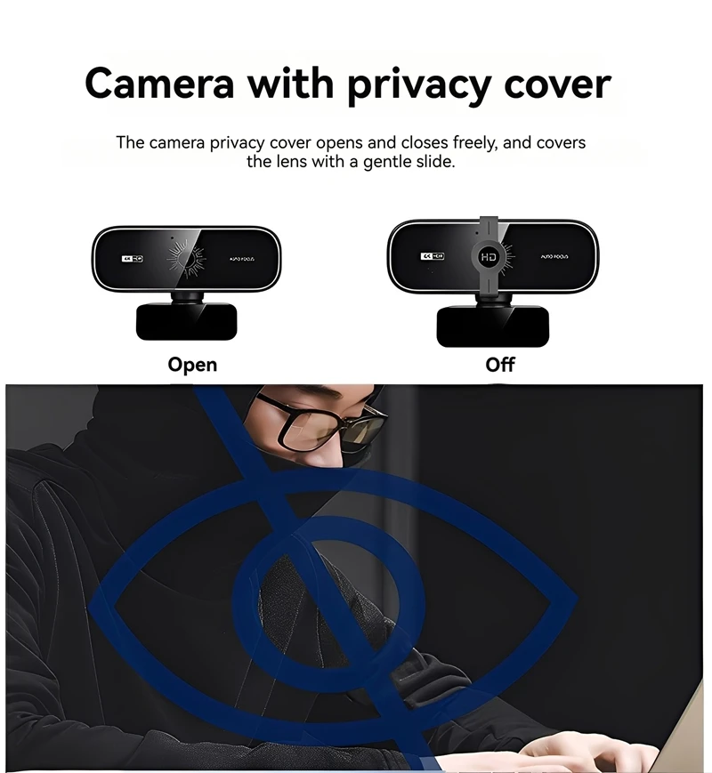 Ventajas del producto: cubierta de privacidad física, blindaje más seguro, micrófono digital incorporado, reducción de ruido y sin ruido, enfoque automático, alta sensibilidad, base 360.