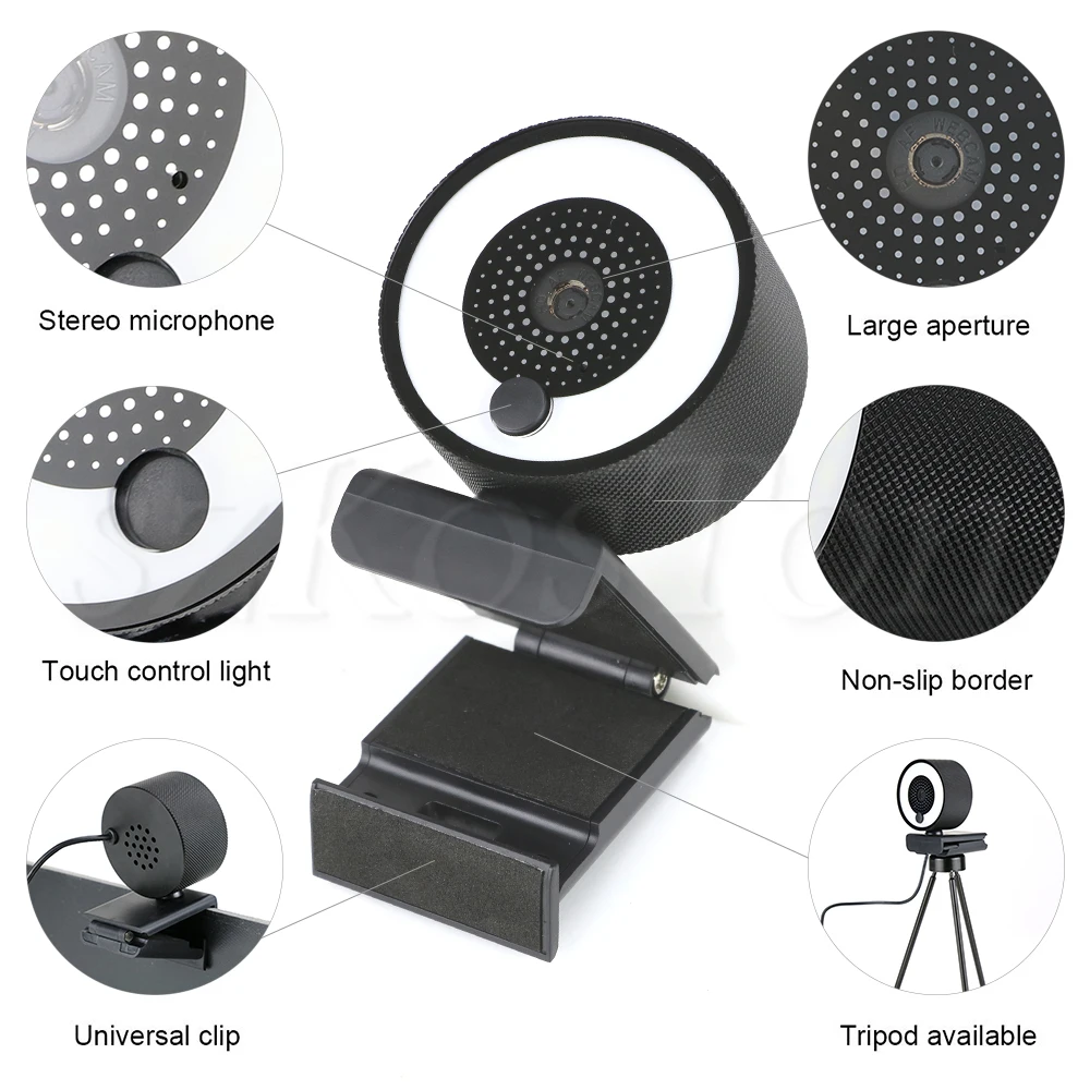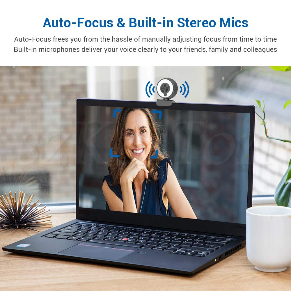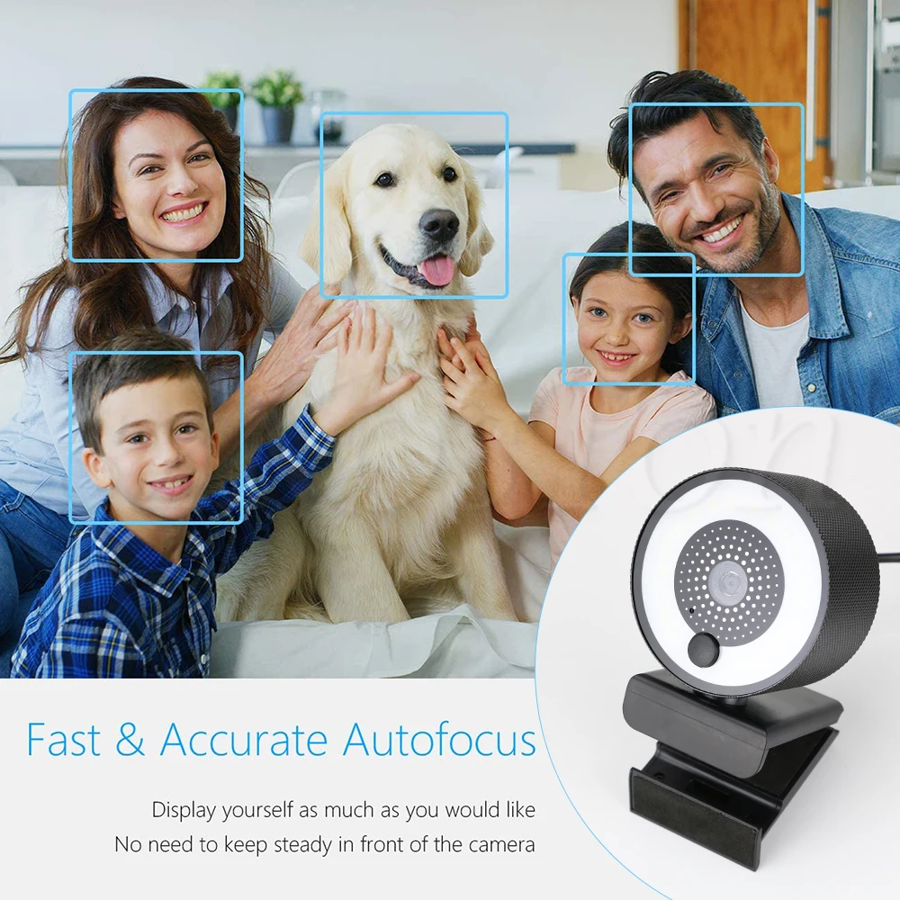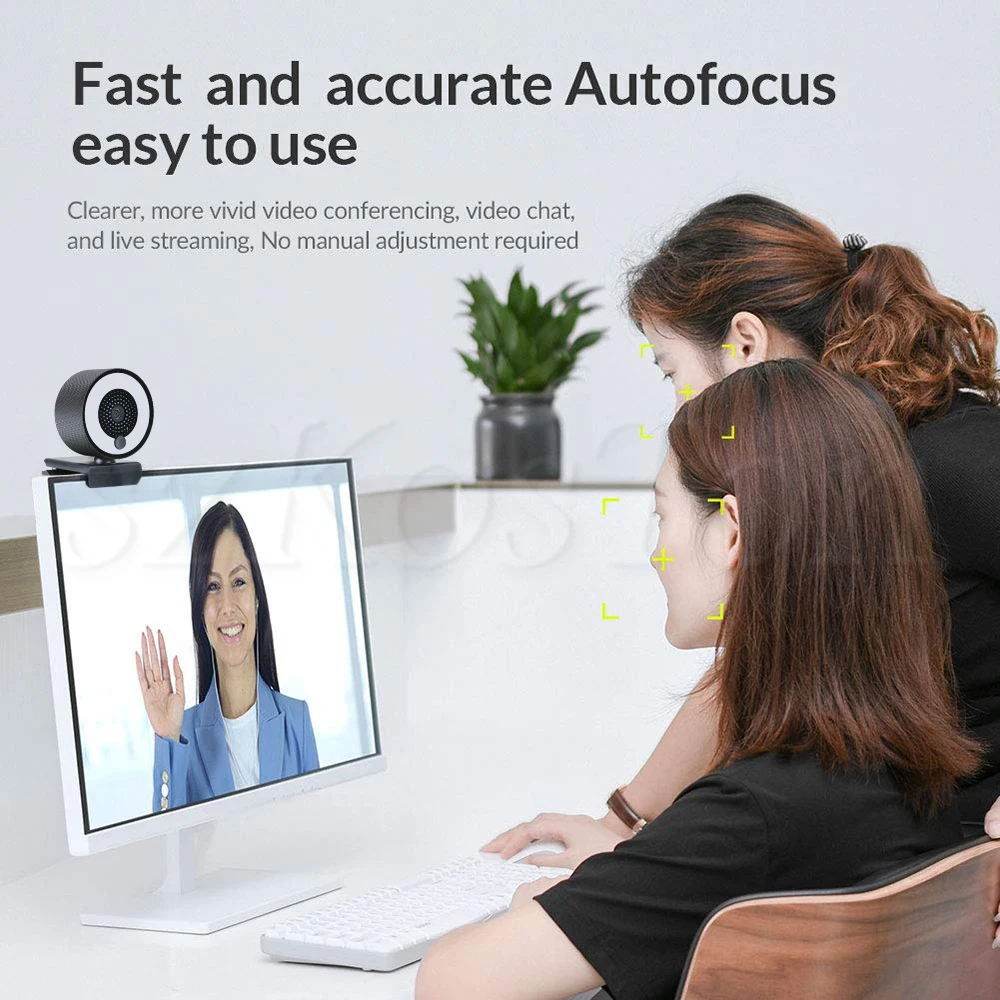 Comprar Cámara Web Autofocus HD 1080P 2K USB para PC, portátil, ordenador de escritorio con micrófono, anillo de luz, trípode, cámara web para Steam