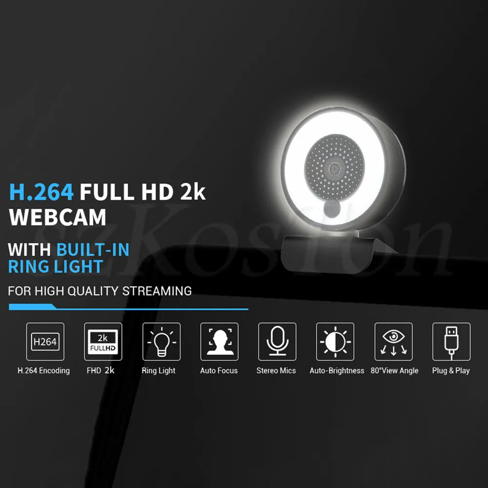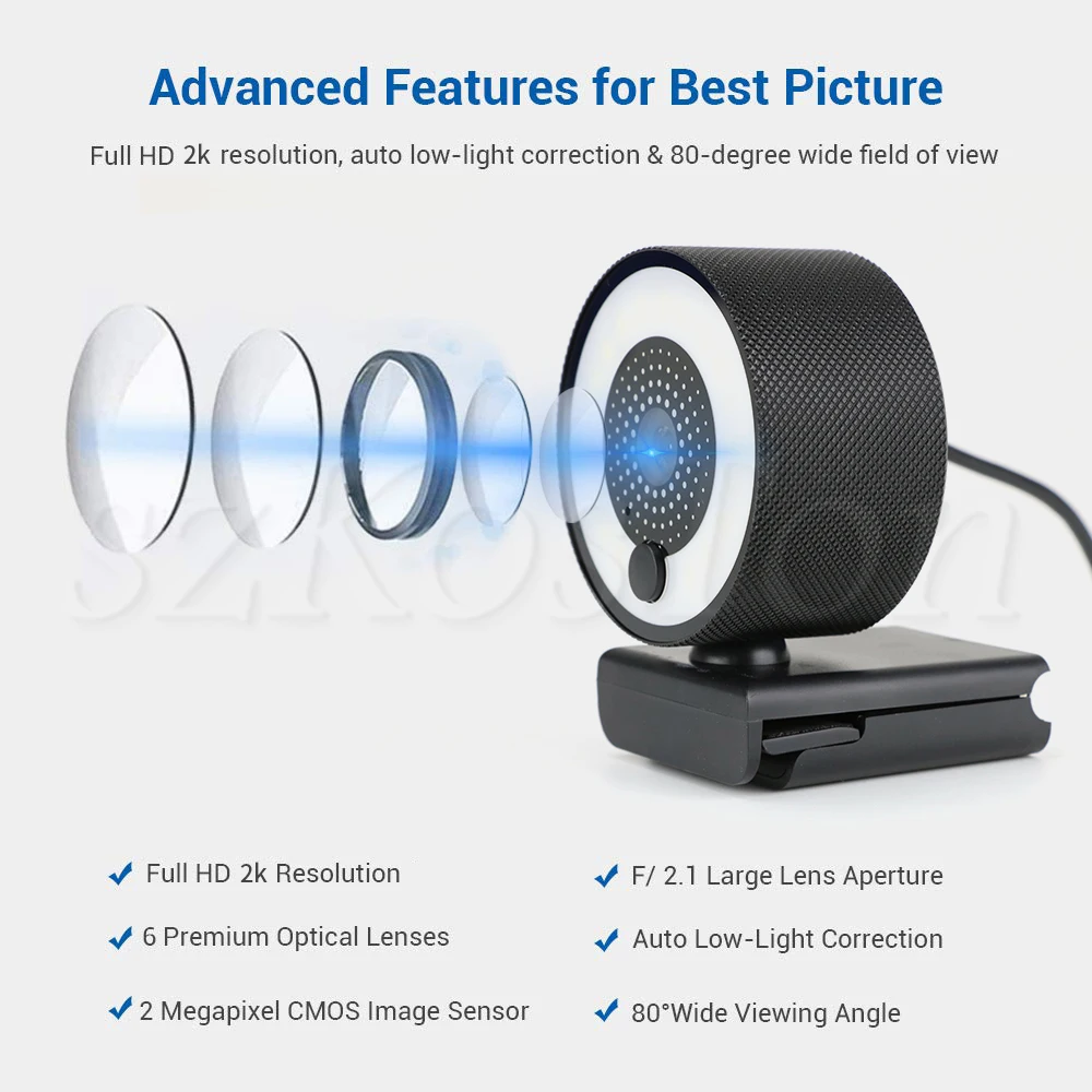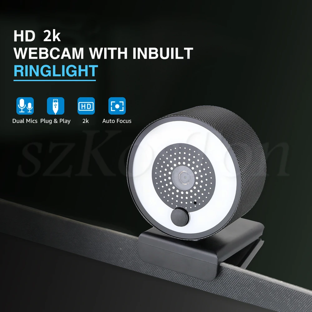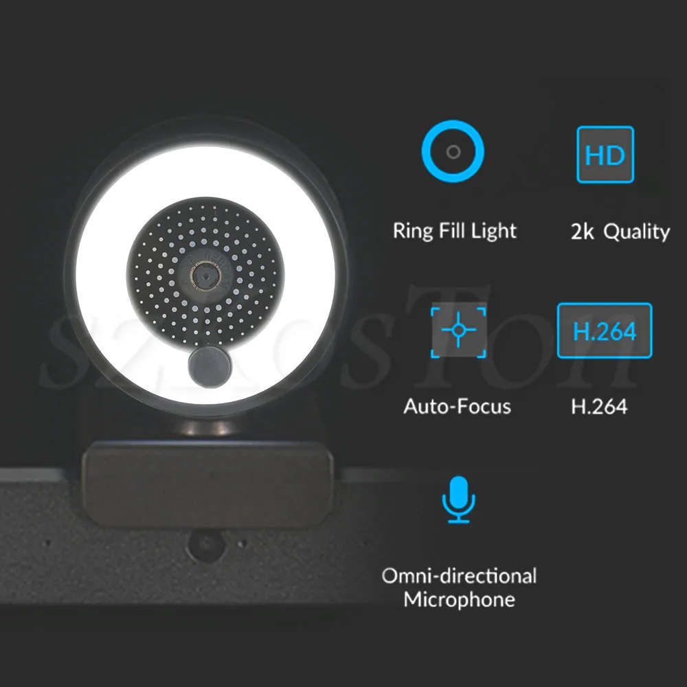 Comprar Cámara Web Autofocus HD 1080P 2K USB para PC, portátil, ordenador de escritorio con micrófono, anillo de luz, trípode, cámara web para Steam