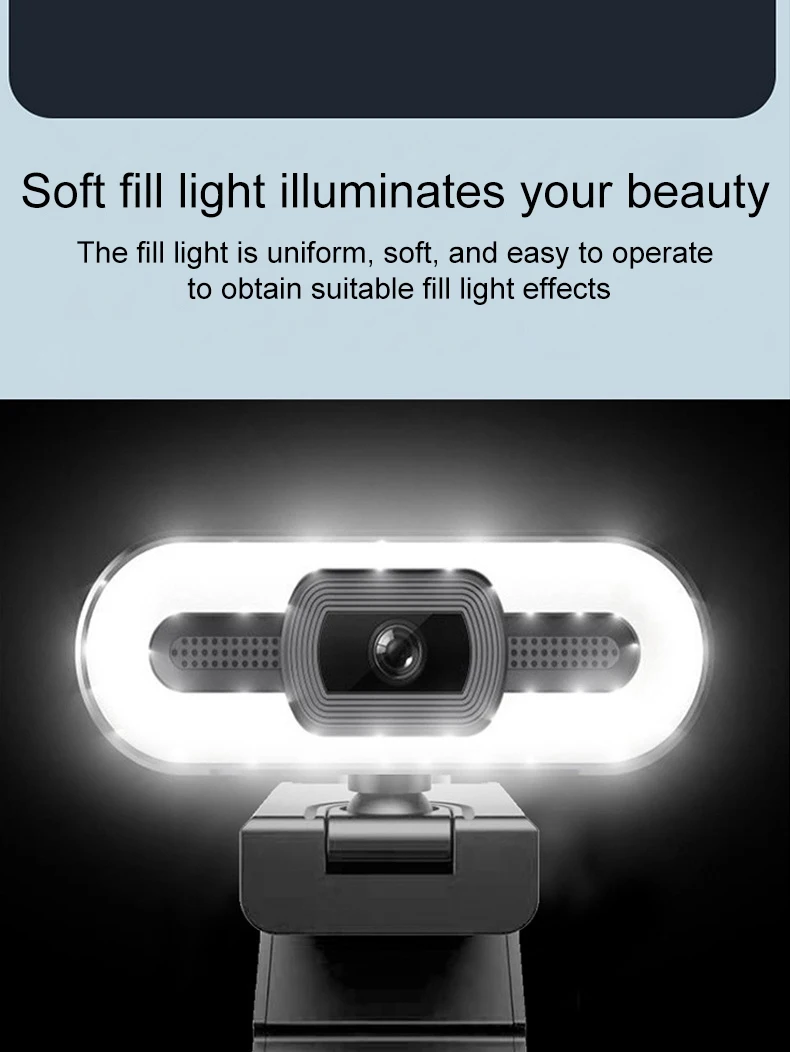 Comprar Cámara Web portátil 4K para PC, portátil, 2K, 1080P, transmisión en vivo, cámara Web Flexible Full HD para ordenador con micrófono y luz