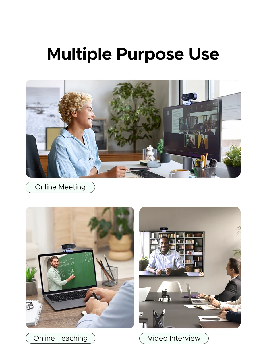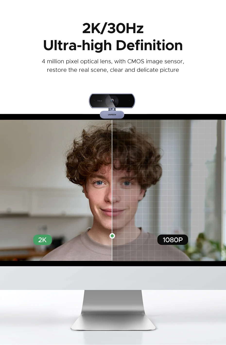Comprar Cámara web UGREEN 2K con micrófono, cámara web USB Full HD, corrección automática de luz, cámara web de vídeo para transmisión