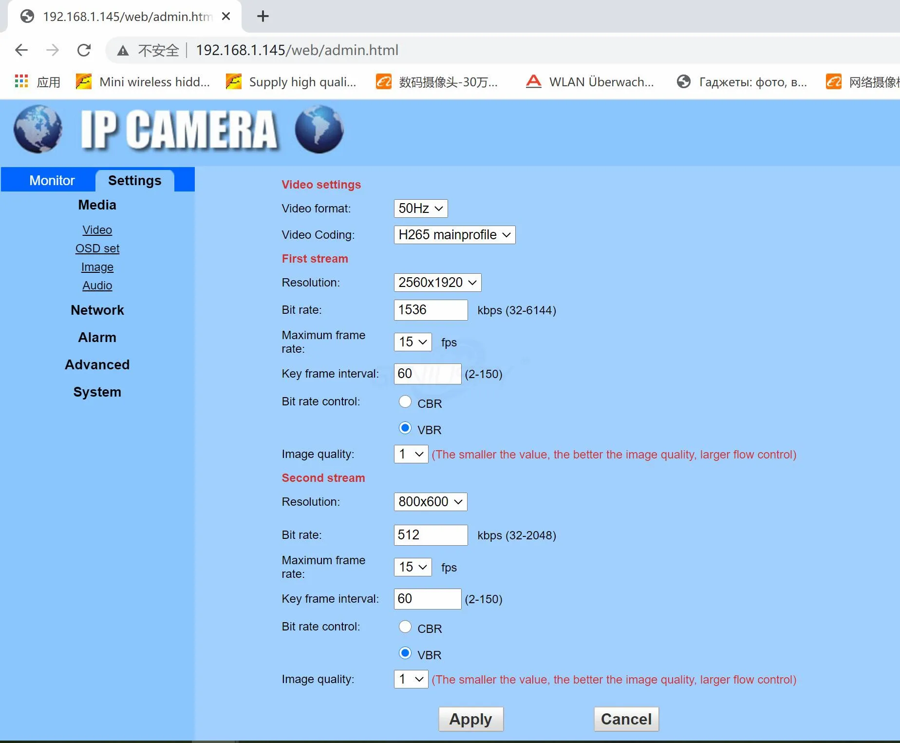 2MP: Flujo principal: 1920*1080P@20fps, 1280x720@25fps